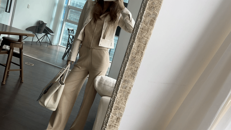 -중앙부 지퍼로 오픈 클로징이 용이하며 기온차가 심한 날씨에 가볍게 코디하기 매우 좋은 세트에요.