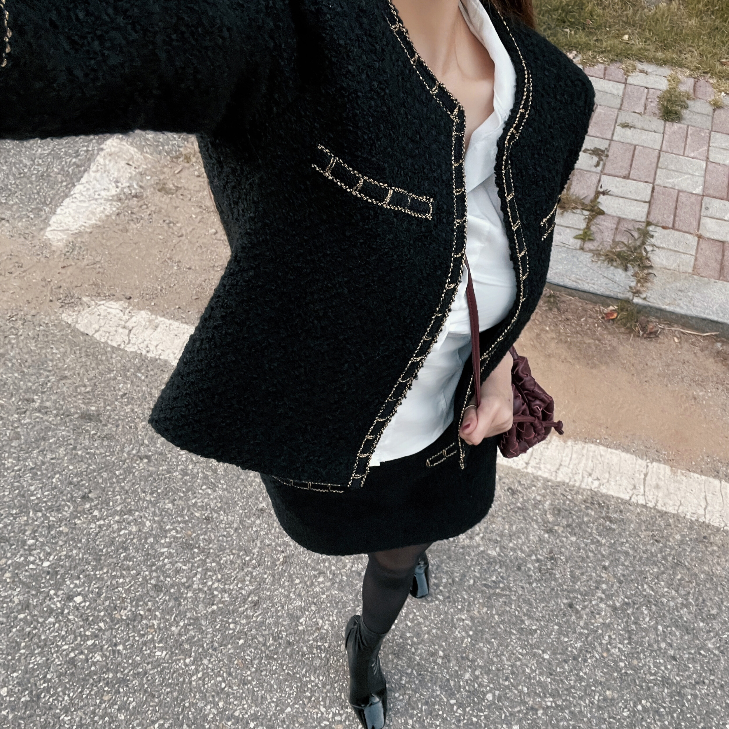 [exclusive] Gold chain tweed set-up (3color)