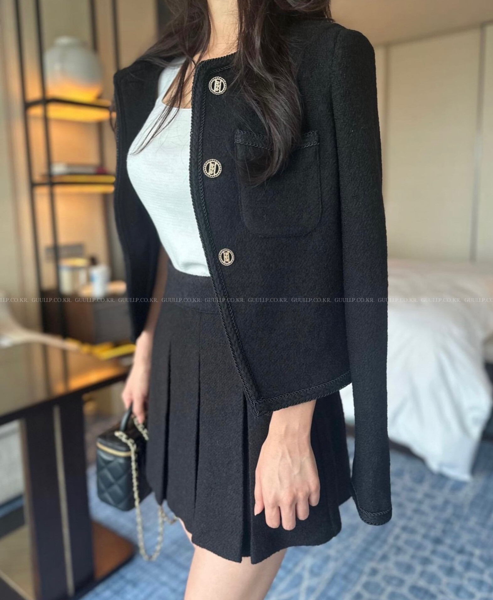 (high quality) 메리 금장 트위드 울 자켓 jacket (2color) WHITE