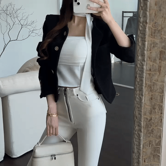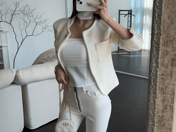 하단으로 곡선 라인을 주어 여성스러움과 비율이 더욱 좋아보일 수 있도록 시각적인 효과를 준 자켓입니다.