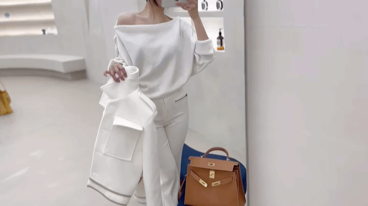 보트넥 또는 오프숄더 디자인으로 다양한 스타일링이 가능하며