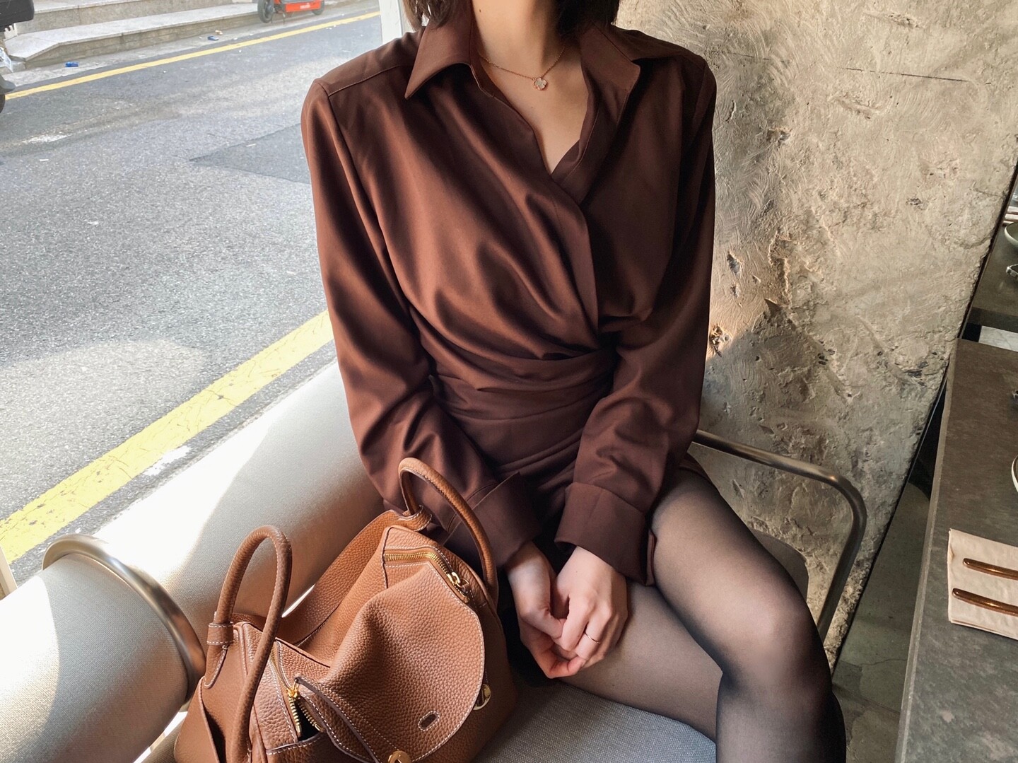 자연스럽고 따뜻한 색감의 원단에 부드럽게 광택이 돌아 페미닌한 매력이 강조되어 착용시 더욱 맘에 드는 제품입니다.