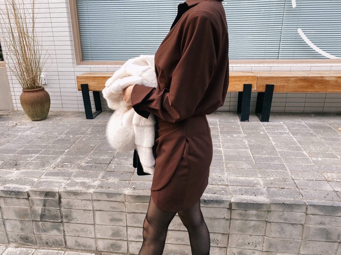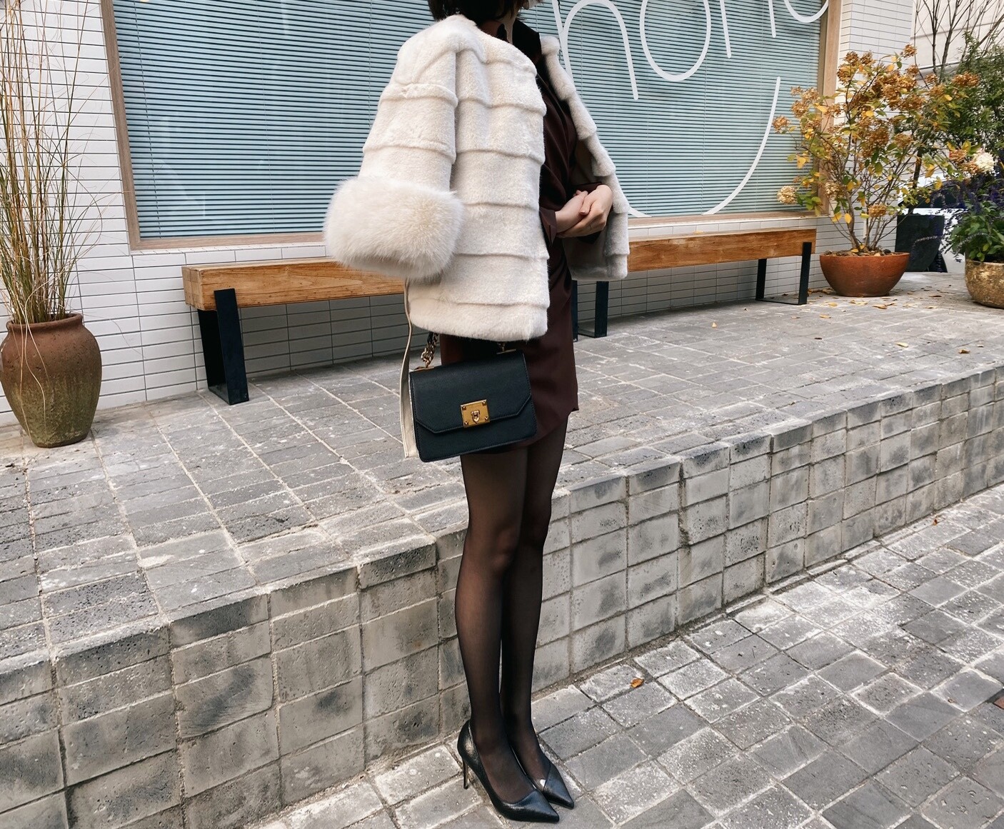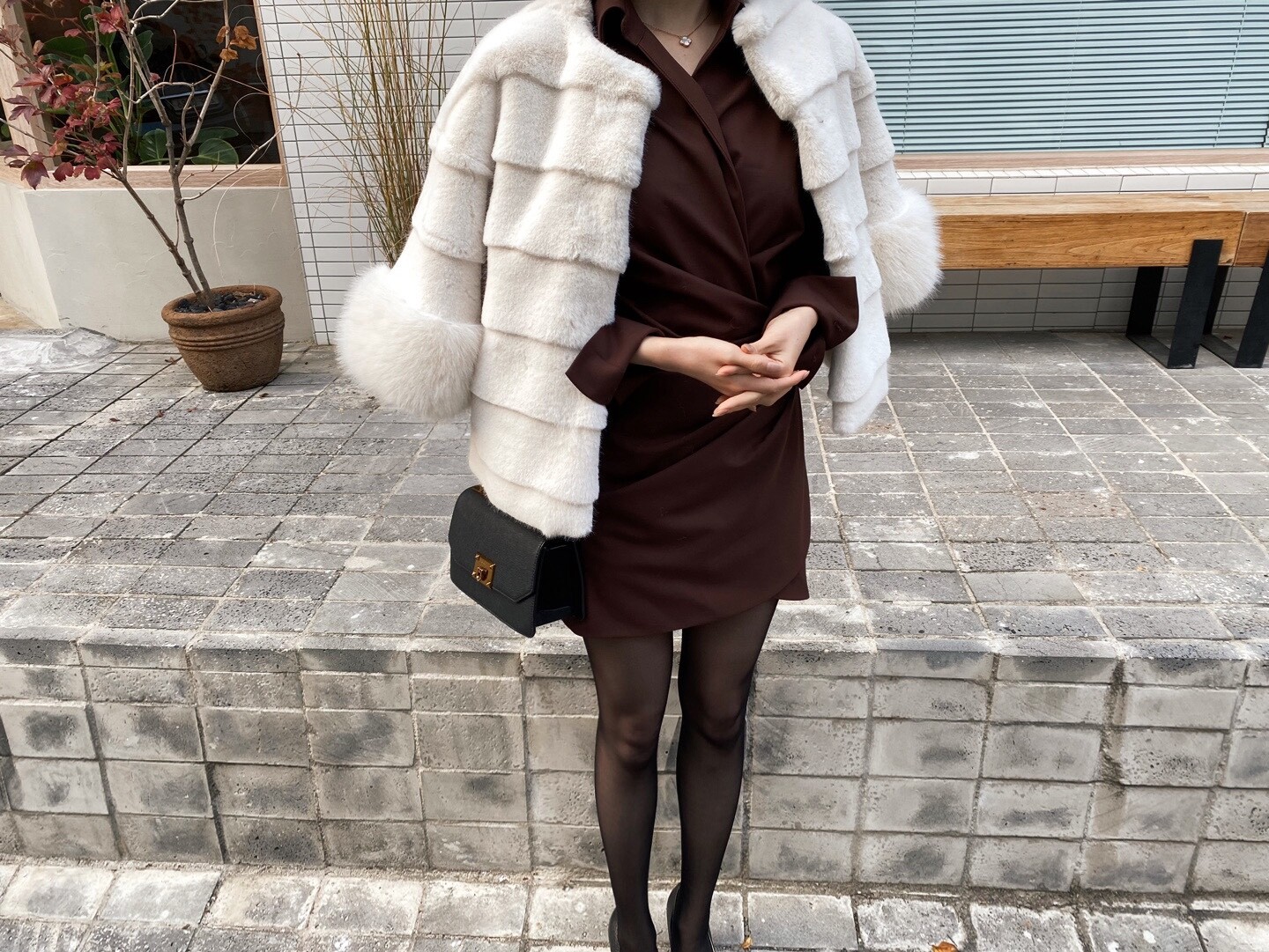 섹시미가 느껴지는 롱 부츠나 FUR 아우터 , 레더 소재의 아이템과 함께 착용하시면
