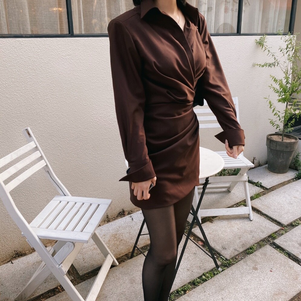 드레이프 디테일 미니 카라 드레스 draped detail mini dress (3color)