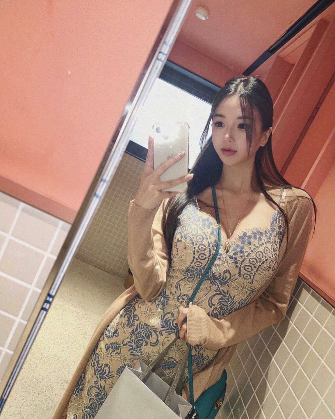 전체적으로 허리는 잘록 들어가게 나온 디자인이라 골반도 있어보이고 몸매가 매우 여성스러워보여요,