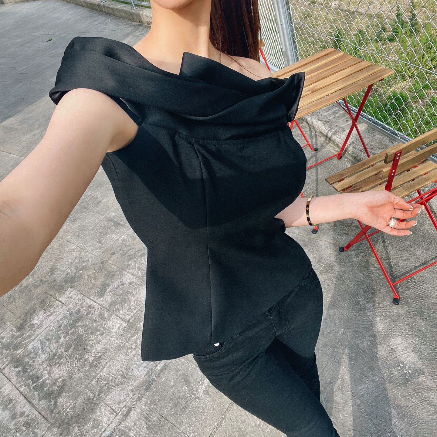 Wave off shoulder silk blouse (3color)