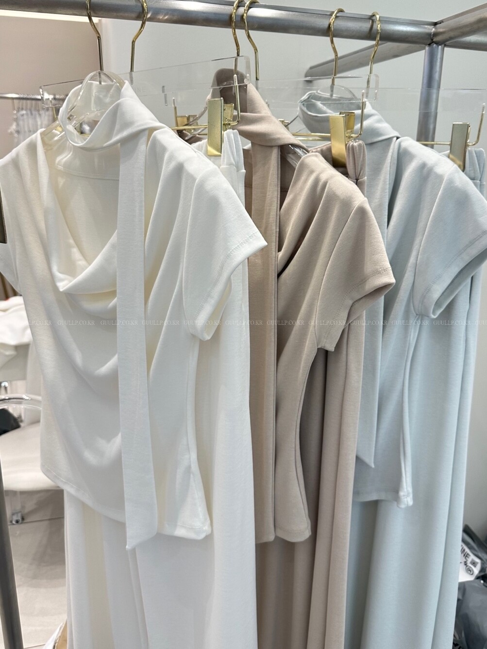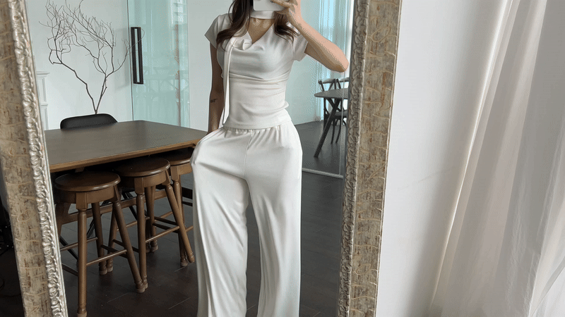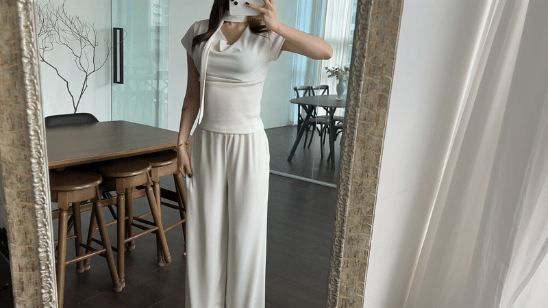(quality line) 드레이프 반팔 타이 set (3col) 와이드 팬츠 세트