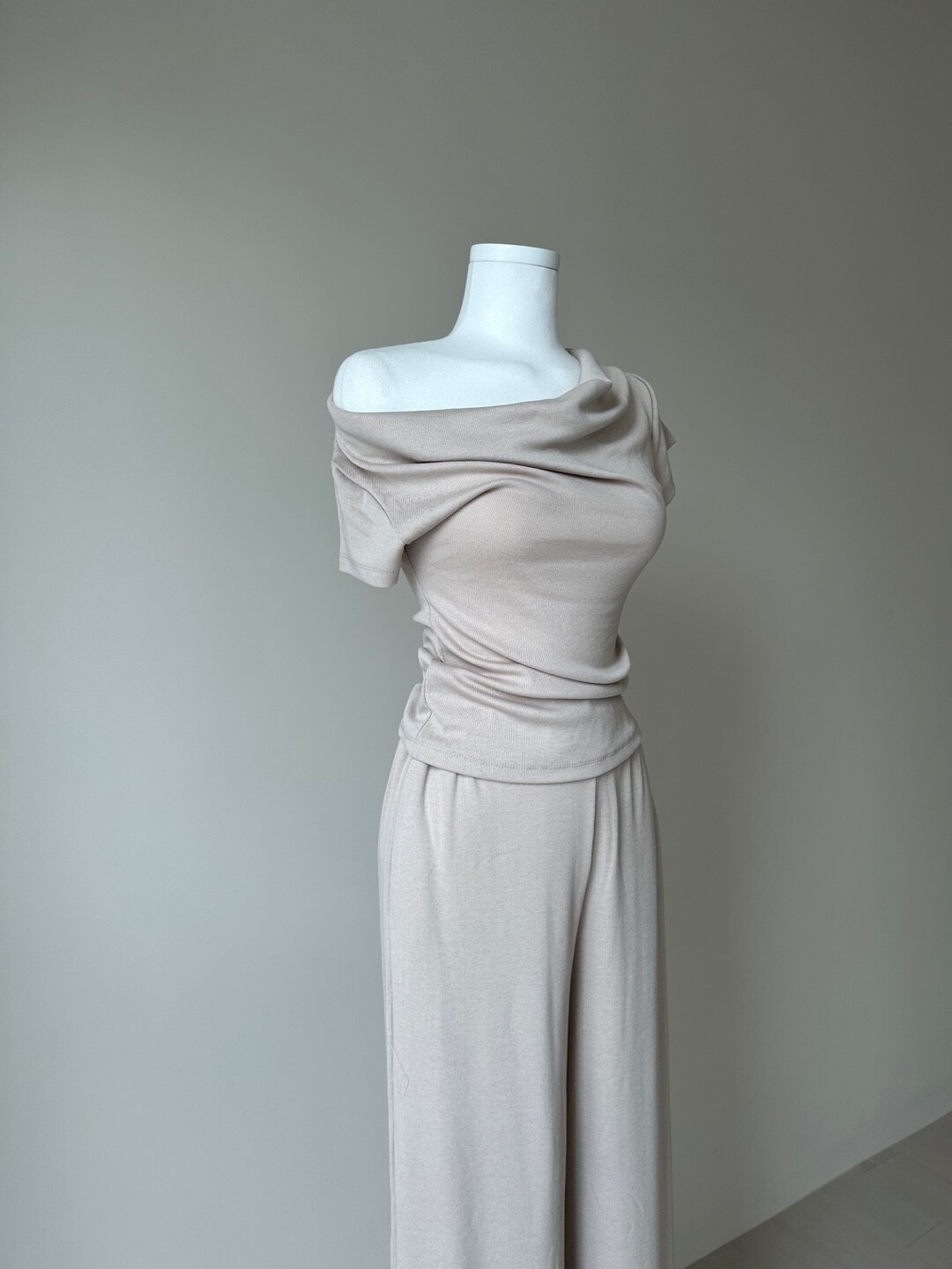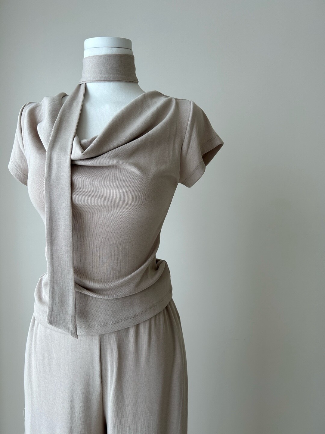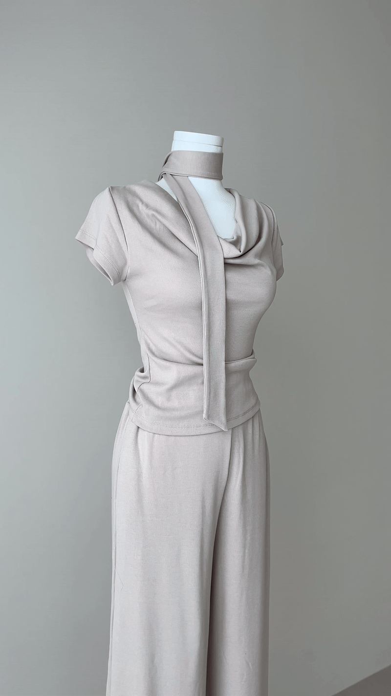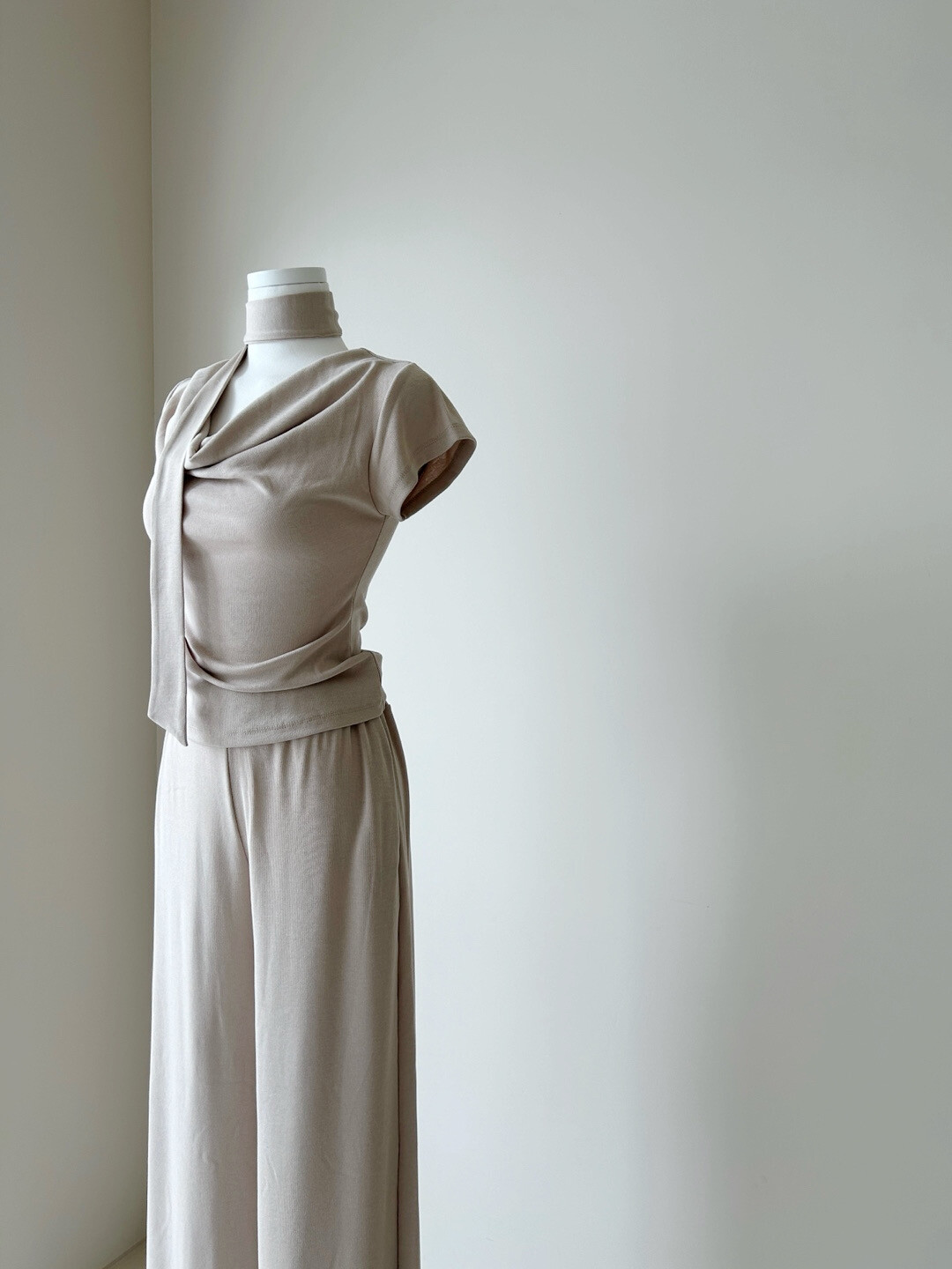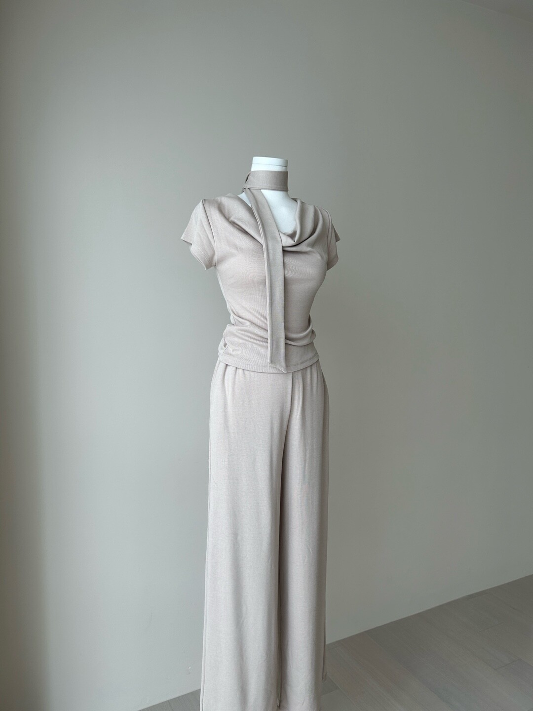 (quality line) 드레이프 반팔 타이 set (3col) 와이드 팬츠 세트