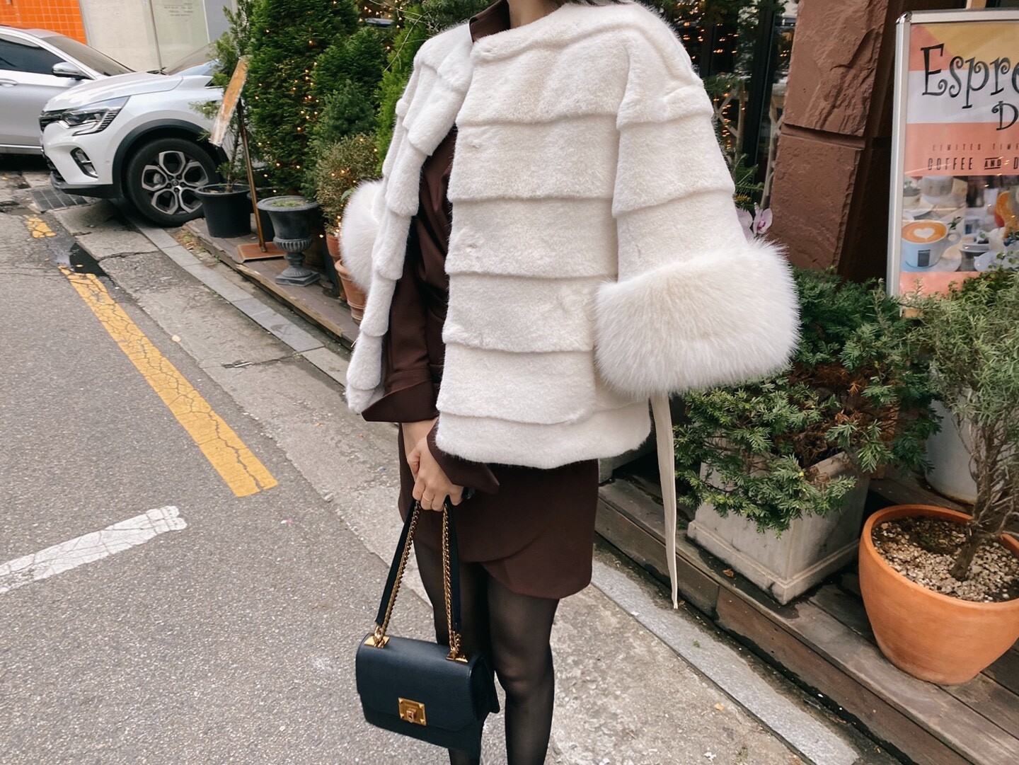 무엇보다 따듯하고 너무 부하지 않은 느낌의 세련된 퍼 자켓입니다.