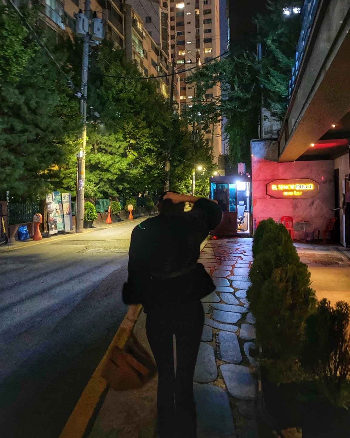 블랙 컬러는 슬랙스와 코디하여 깔끔하게 착용하였는데