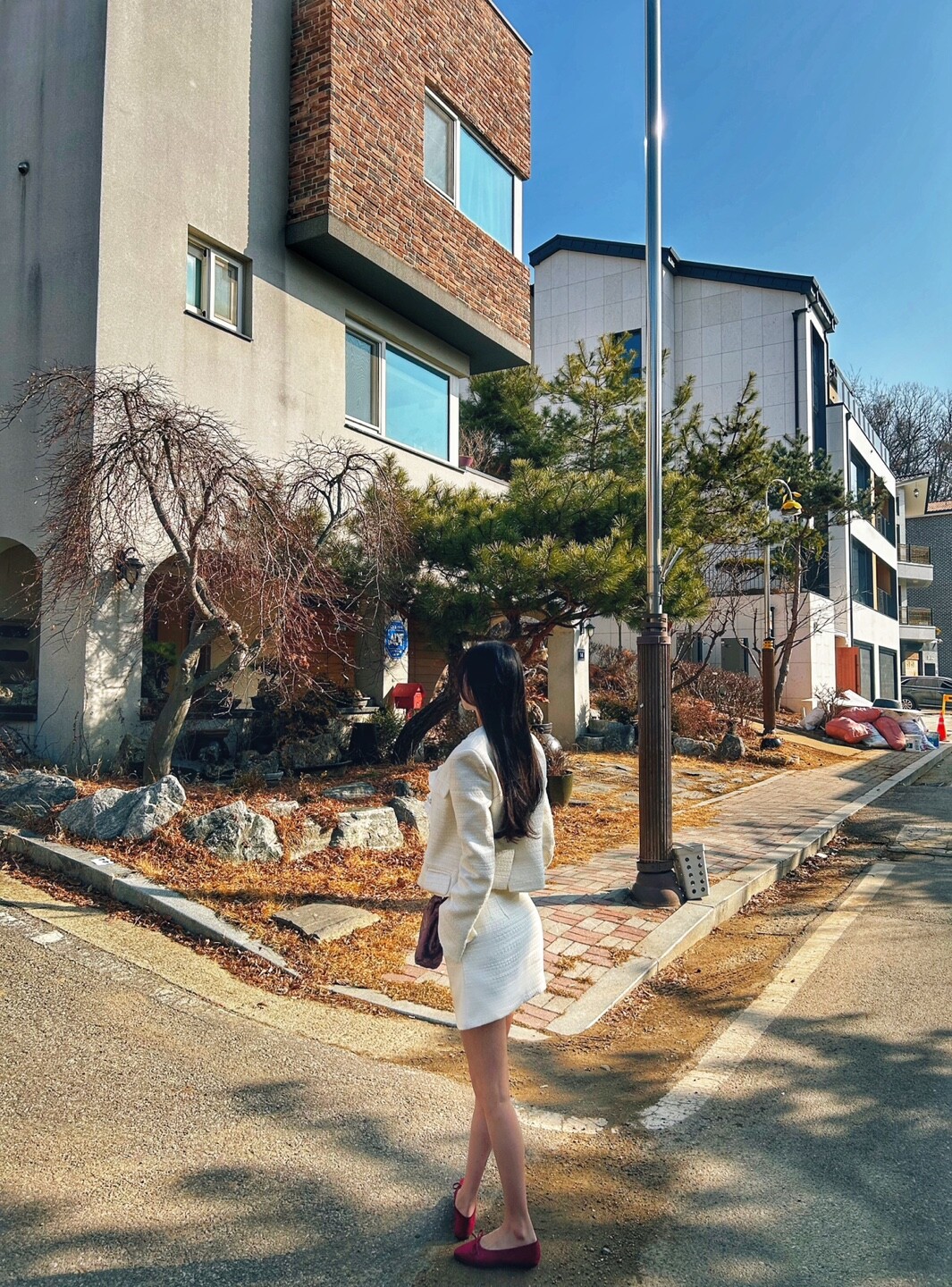 화이트 계열 색상 , 니트 , 린넨 등의 소재