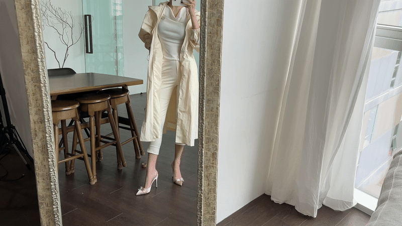 -허리 스트링으로 여성스러운 분위기의 연출이 가능해 힐에도 잘 어울리더라구요.