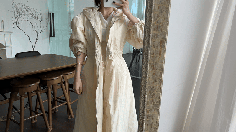 (quality line) 사파리 퍼프 스트링 롱 자켓 JP (2col) / Black