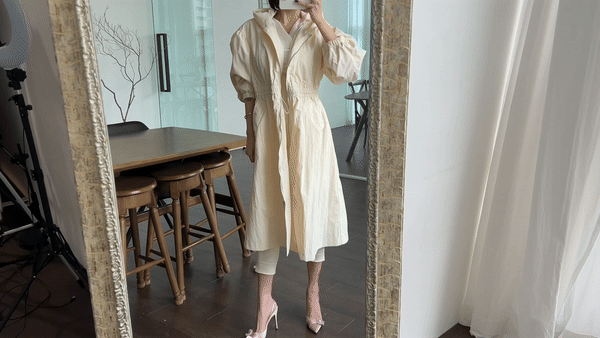 (quality line) 사파리 퍼프 스트링 롱 자켓 JP (2col) / Cream