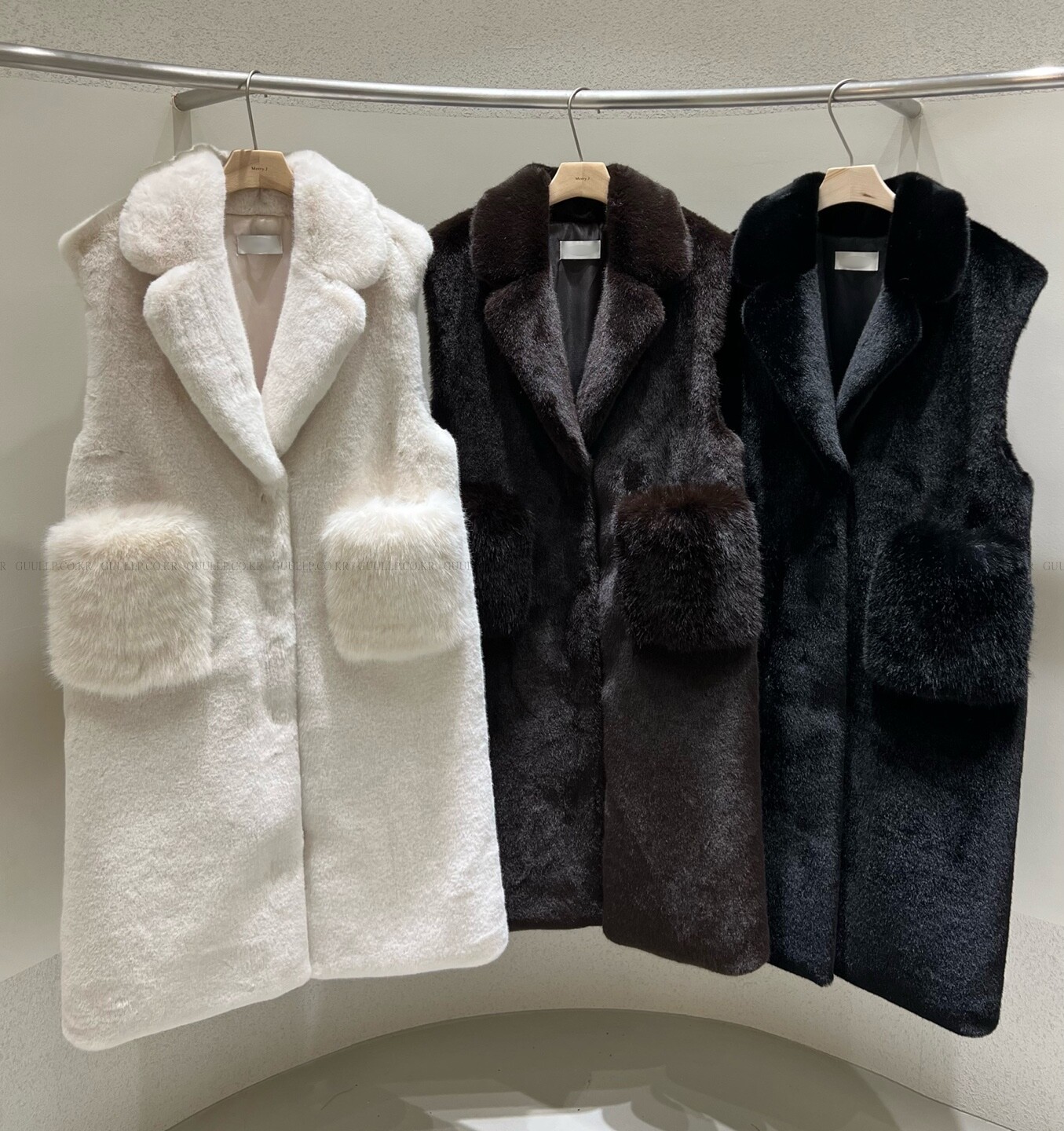 [Fake fur 국내제작 long ver.] fox pocket fur vest (3color)