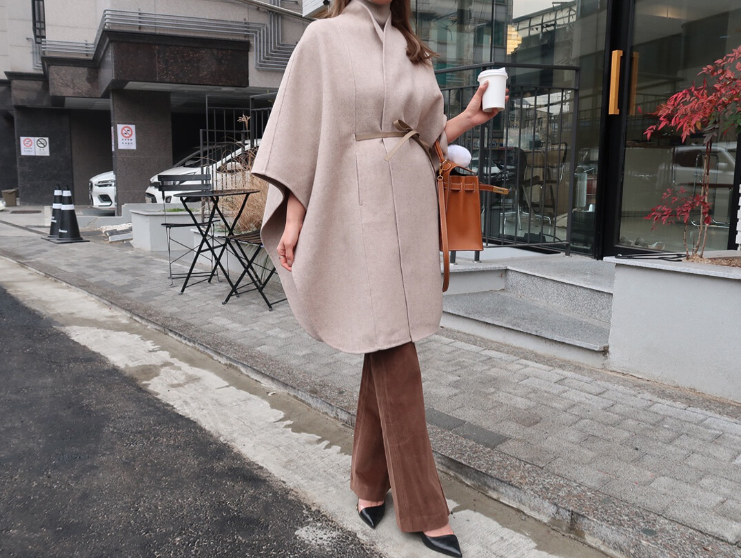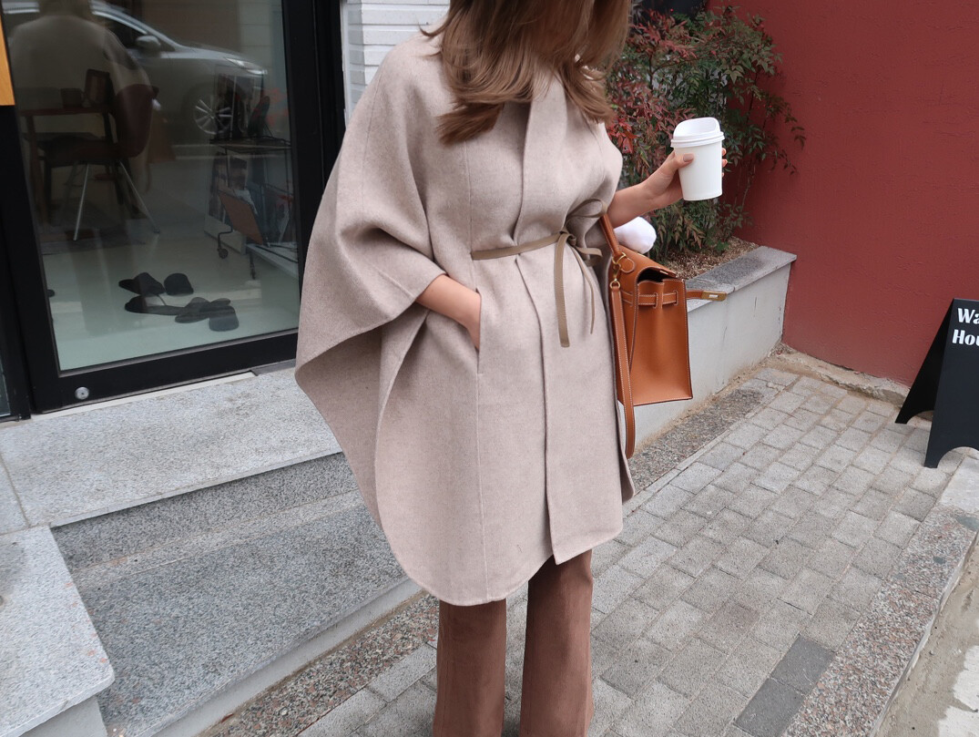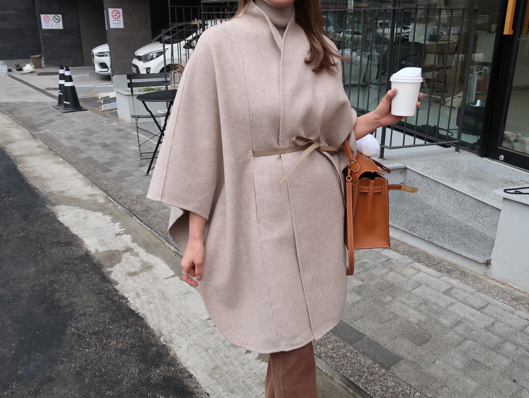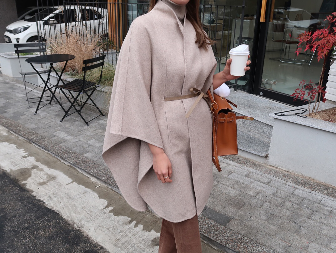 [Handmade] 로로 케이프 벨티드 코트 (레더 벨트SET)