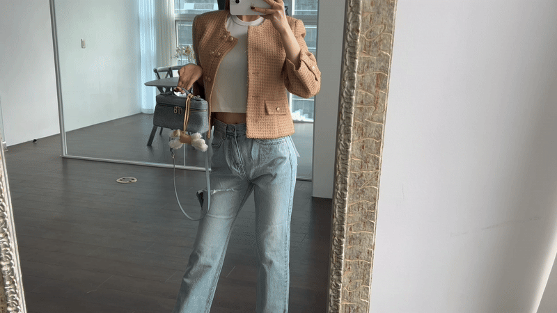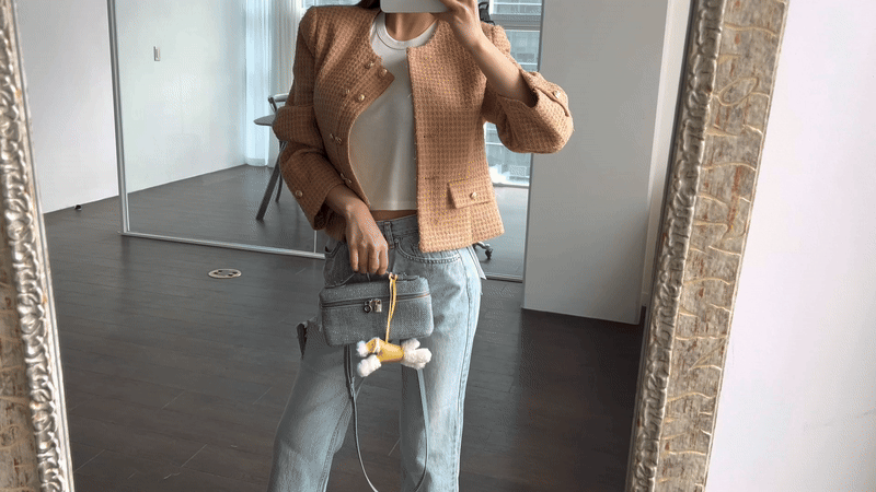 균형잡힌 핏의 더블 트위드자켓 입니다.