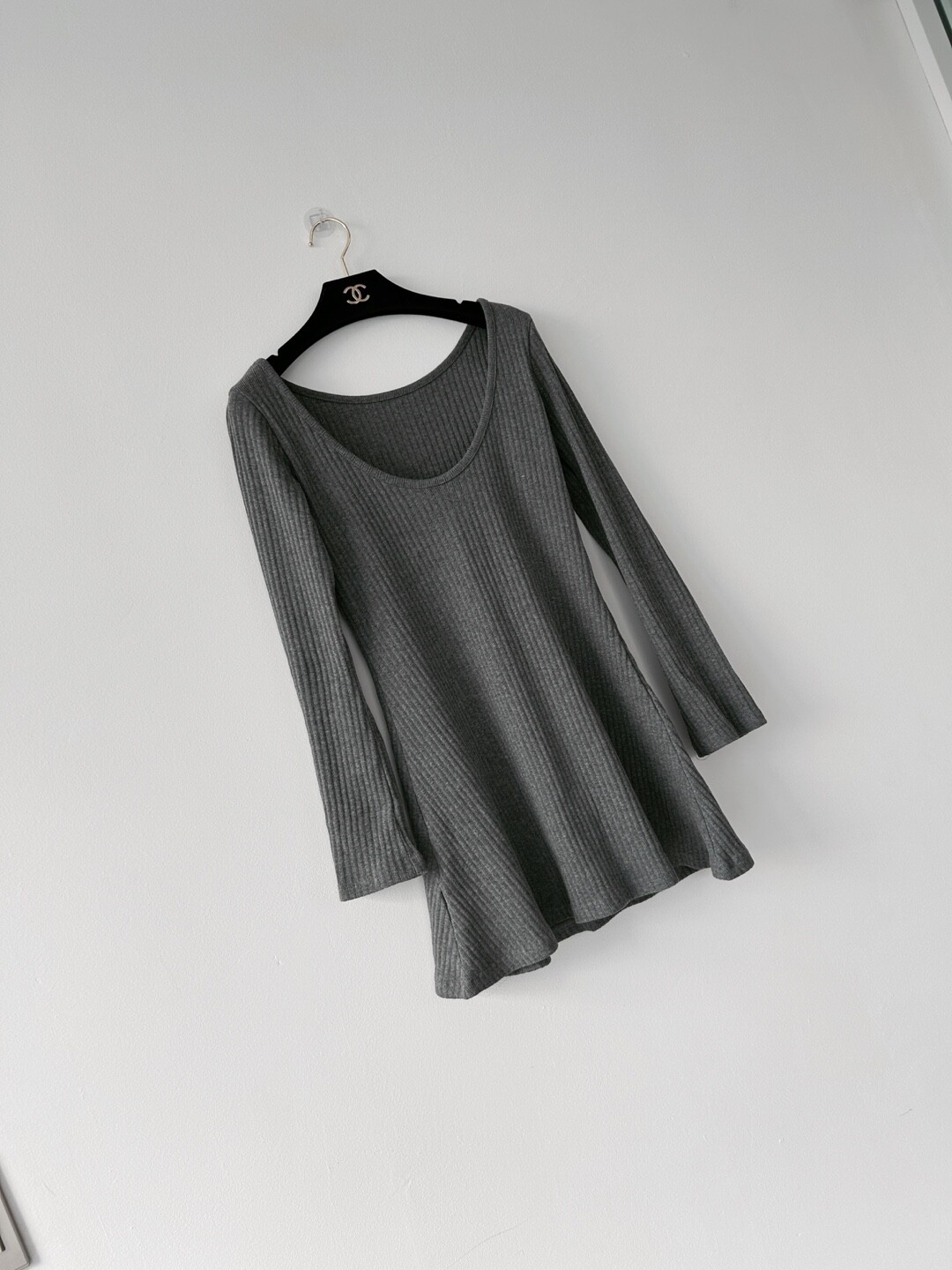 딥U넥 플레어 원피스 (3col) / 양면 u넥,입술넥