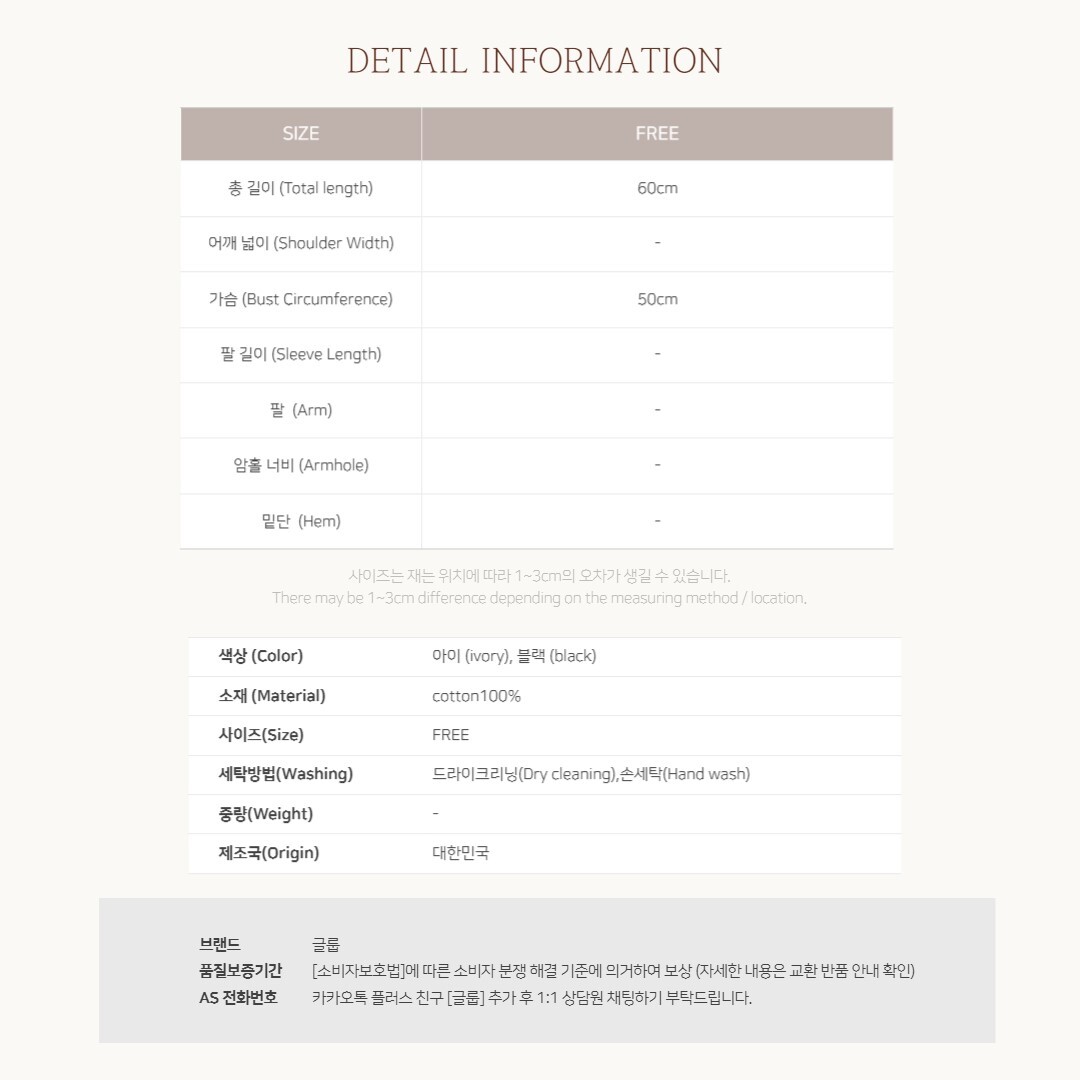 - 저희는 1:1오더 주문 방식으로 교환 및 환불 불가합니다. 주문시 동의서 선택란 참고해주세요.