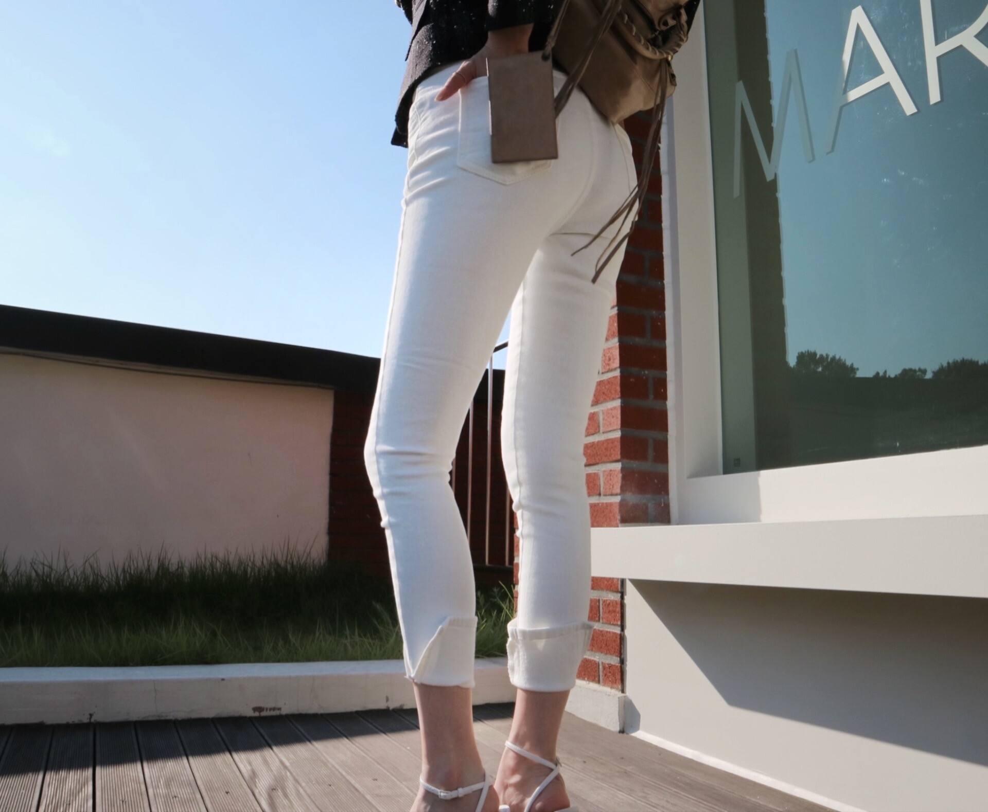 [국내 제작 / 기모] 밑단 절개 롤업 하이 스키니 (2color)