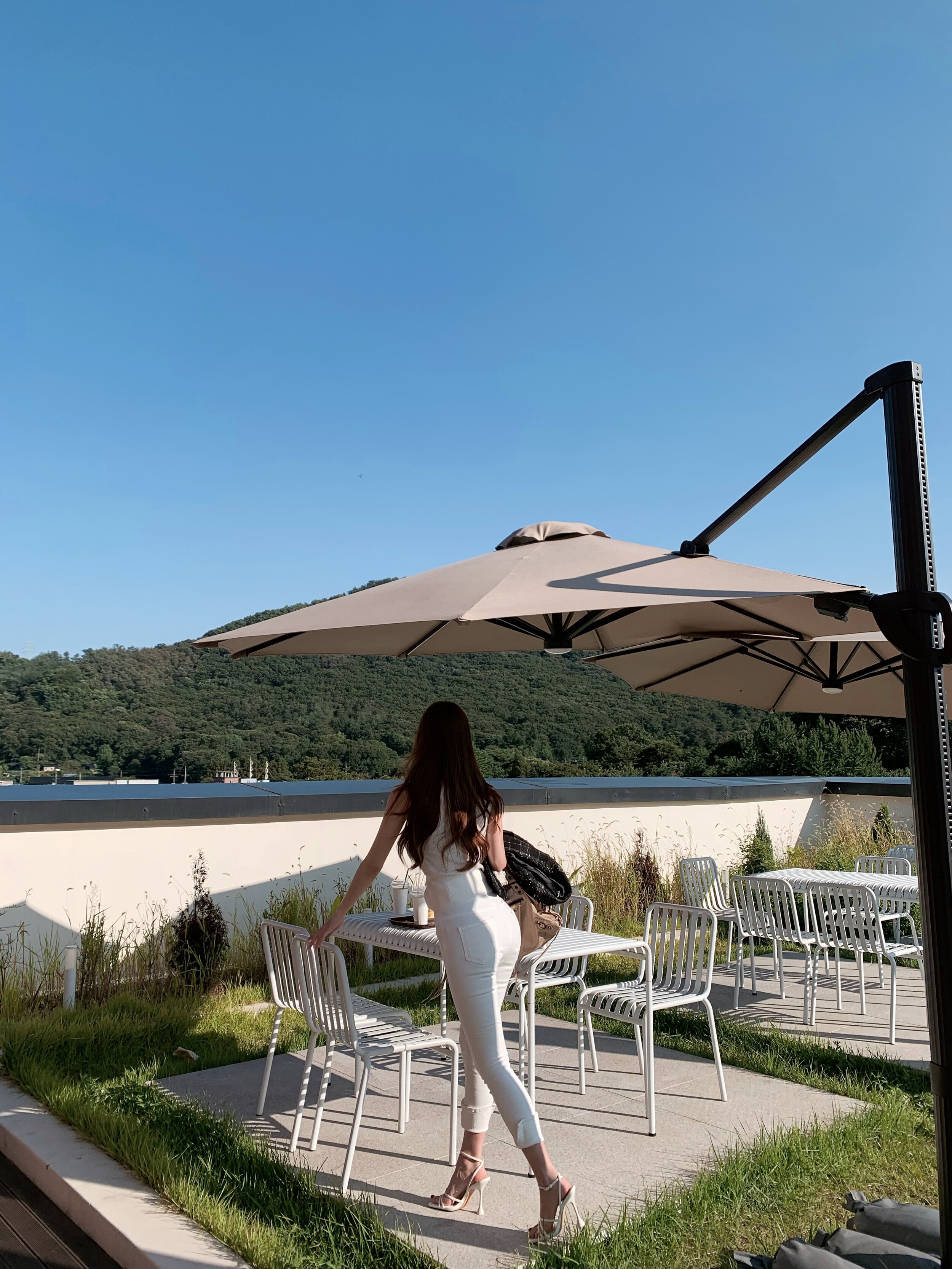 화이트 계열 색상 , 니트 , 린넨 등의 소재