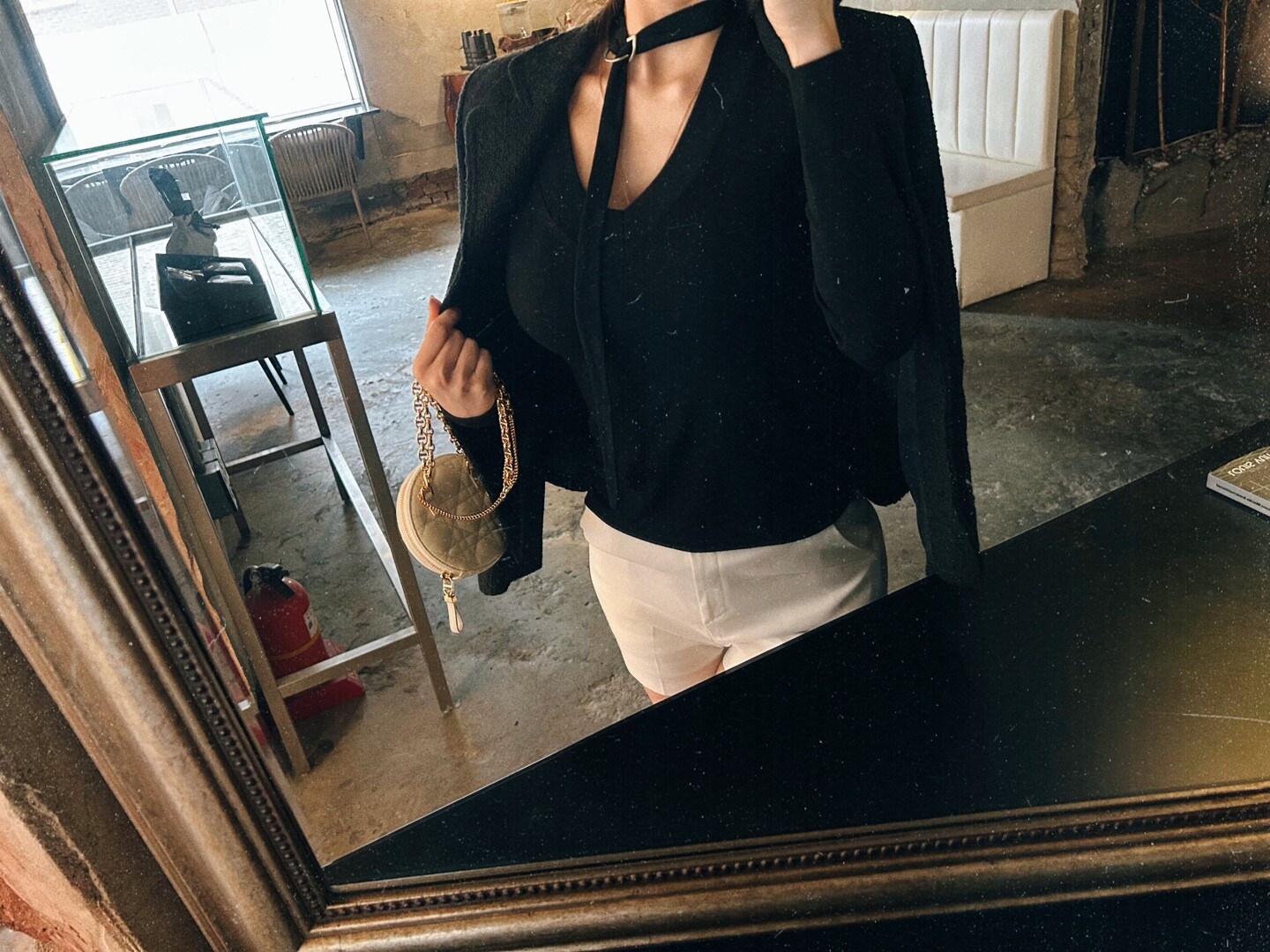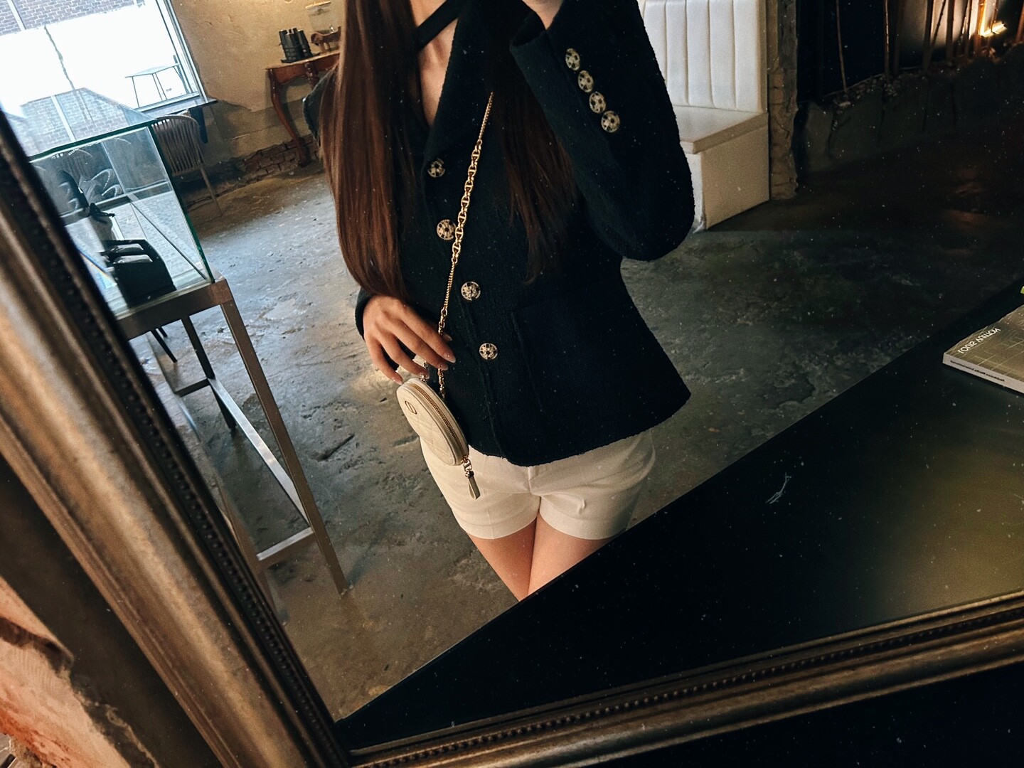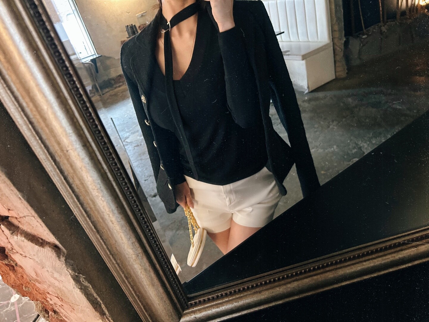 -안쪽으로 브이넥을 한번 더 주므로써 적당한 파임의 넥라인이며, 깊고 넓은 브이넥 스티치가 더욱 갸름한 얼굴형으로 보일 수 있는 디자인입니다.