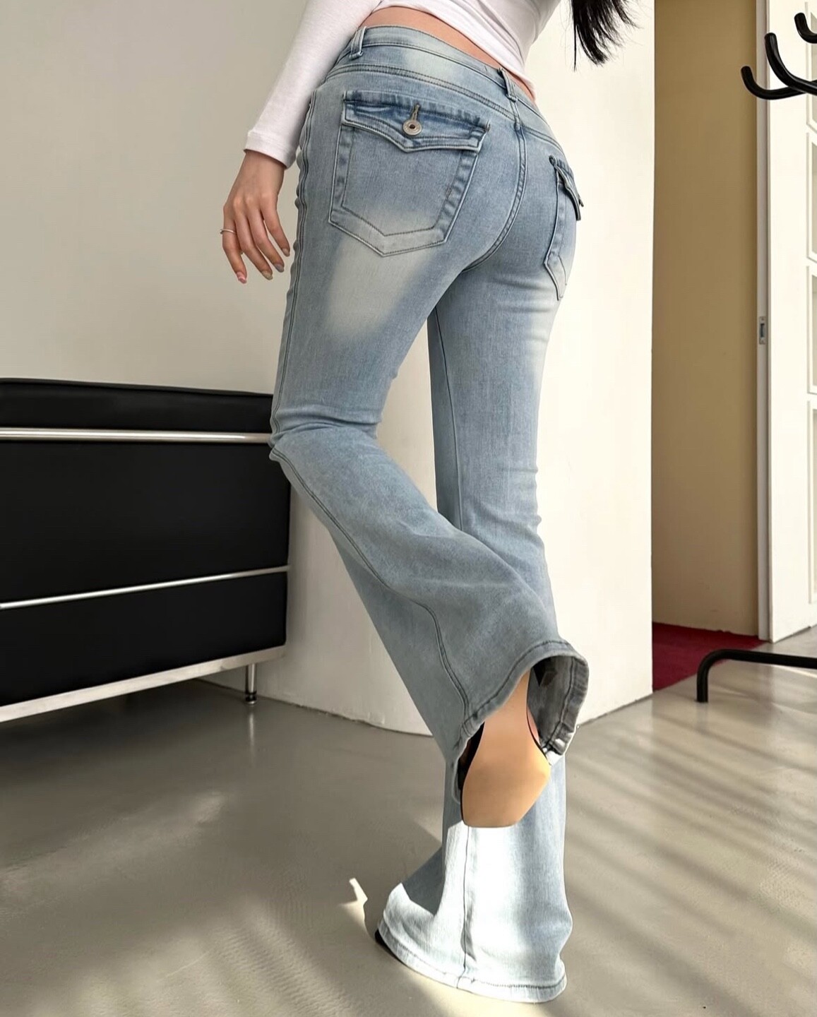 -골반에 맞춰 입는 기존 로우라이즈 바지 특성상 짧은 기장을 보안하여 롱하게 제작 된 제품이라 전체적인 실루엣이 슬림하고 다리가 정말 길어보여요.