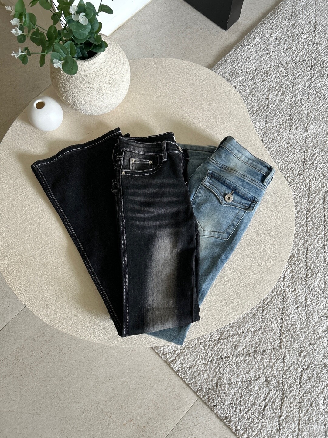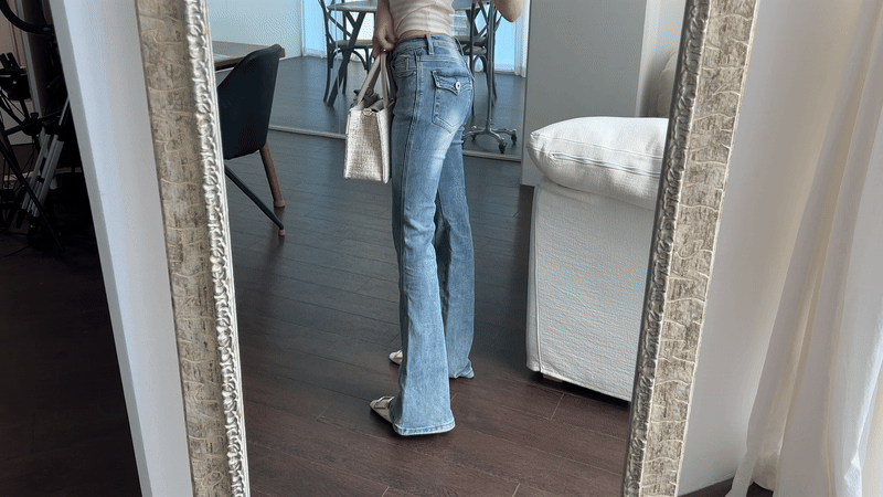 -러브핸들, 군살 눌리지 않게 기존 허리둘레 작던 로우라이즈들 보다 넉넉하게 제작 된 부츠컷 데님 팬츠입니다.