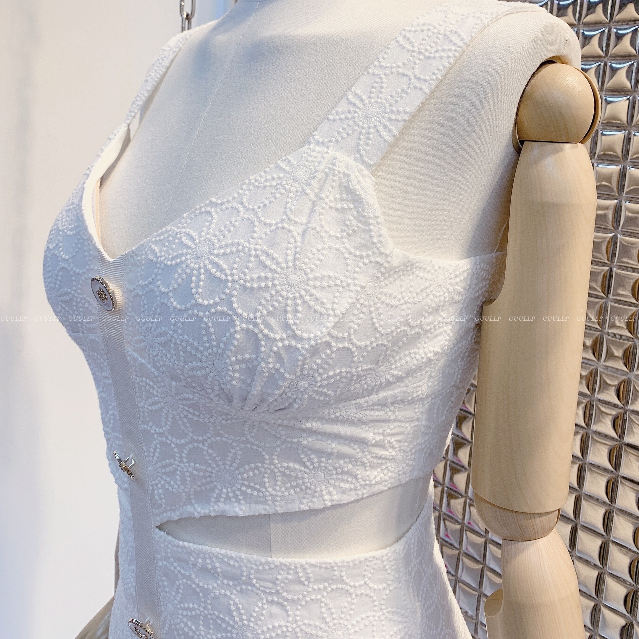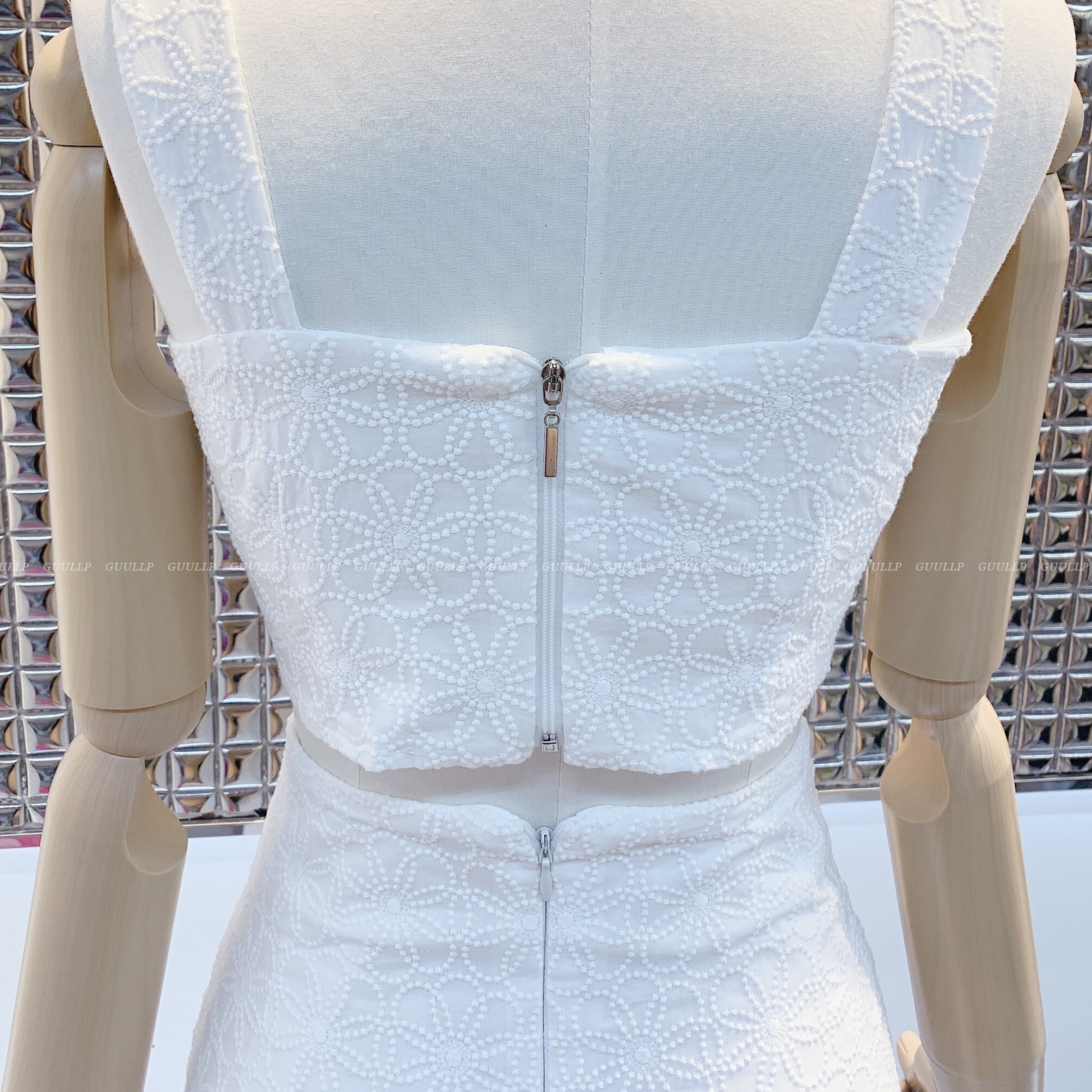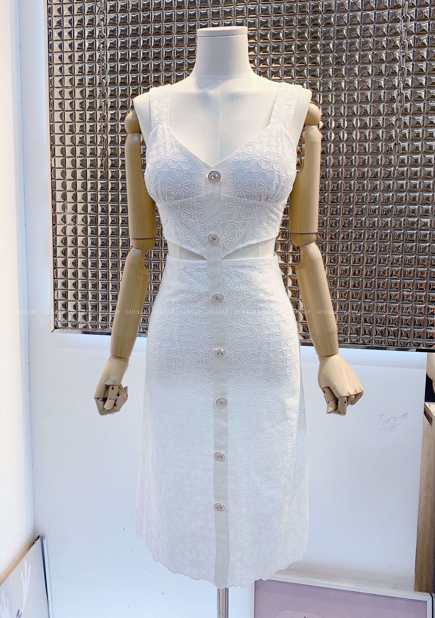 화이트 펀칭 디자인으로 청순해보이면서도 페미닌한 무드의 원피스랄까요?