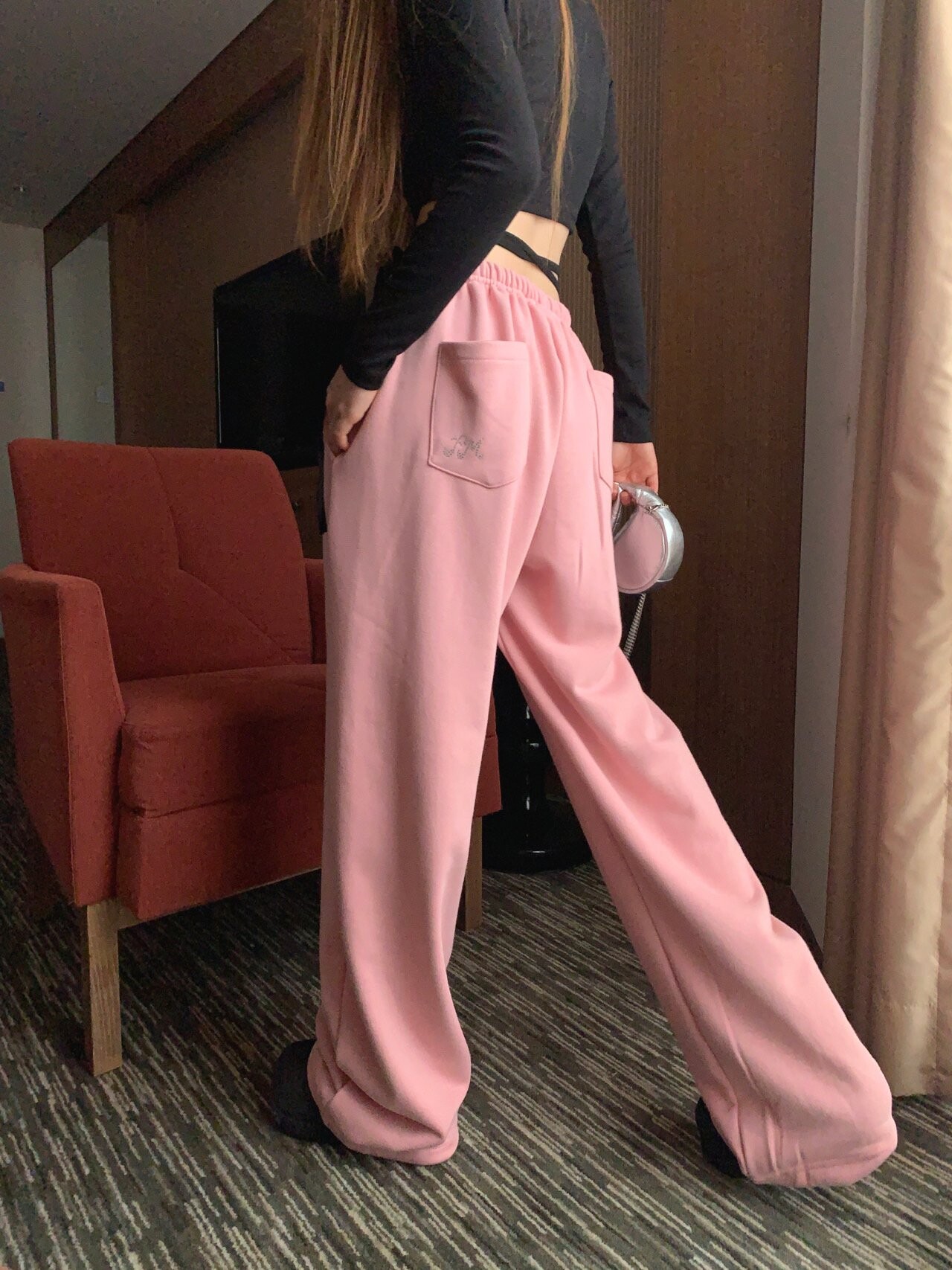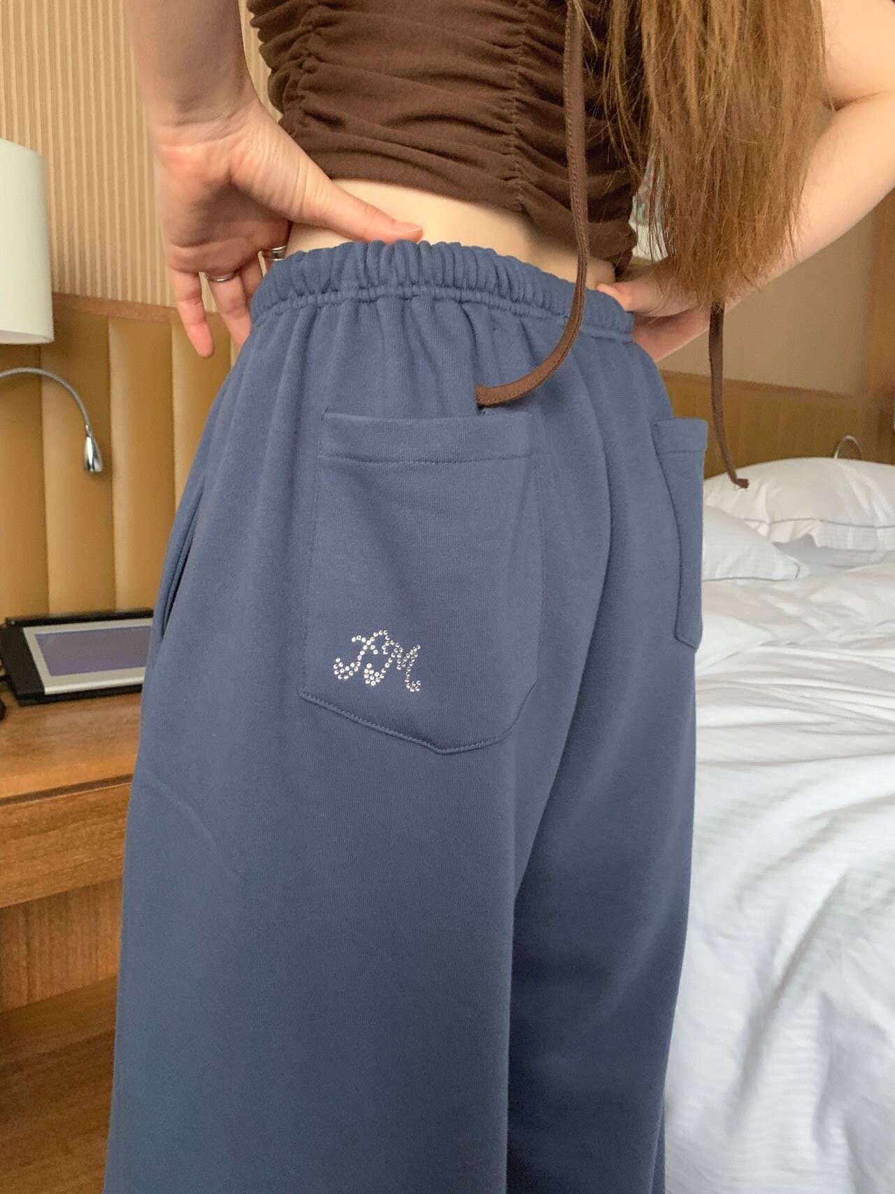 힙 포켓 한쪽의 큐빅 디테일이 매우 귀엽고 사랑스러워요.
