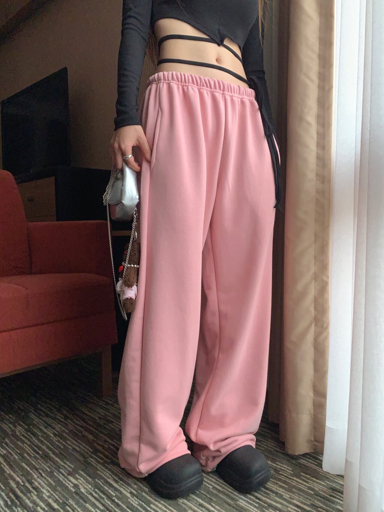 밑단 스트링으로 와이드, 조거 2way 연출이 가능한 제품입니다.