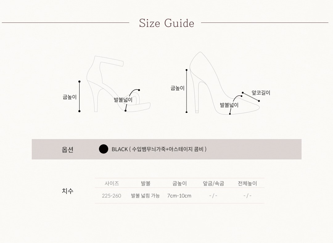 * 이 제품은 240 사이즈 , 10cm 굽 착용 하였습니다.