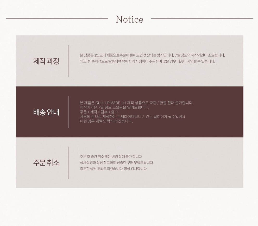 ✓ 1:1 오더 제품으로 교환 및 환불 불가합니다. (중간 취소 동일)