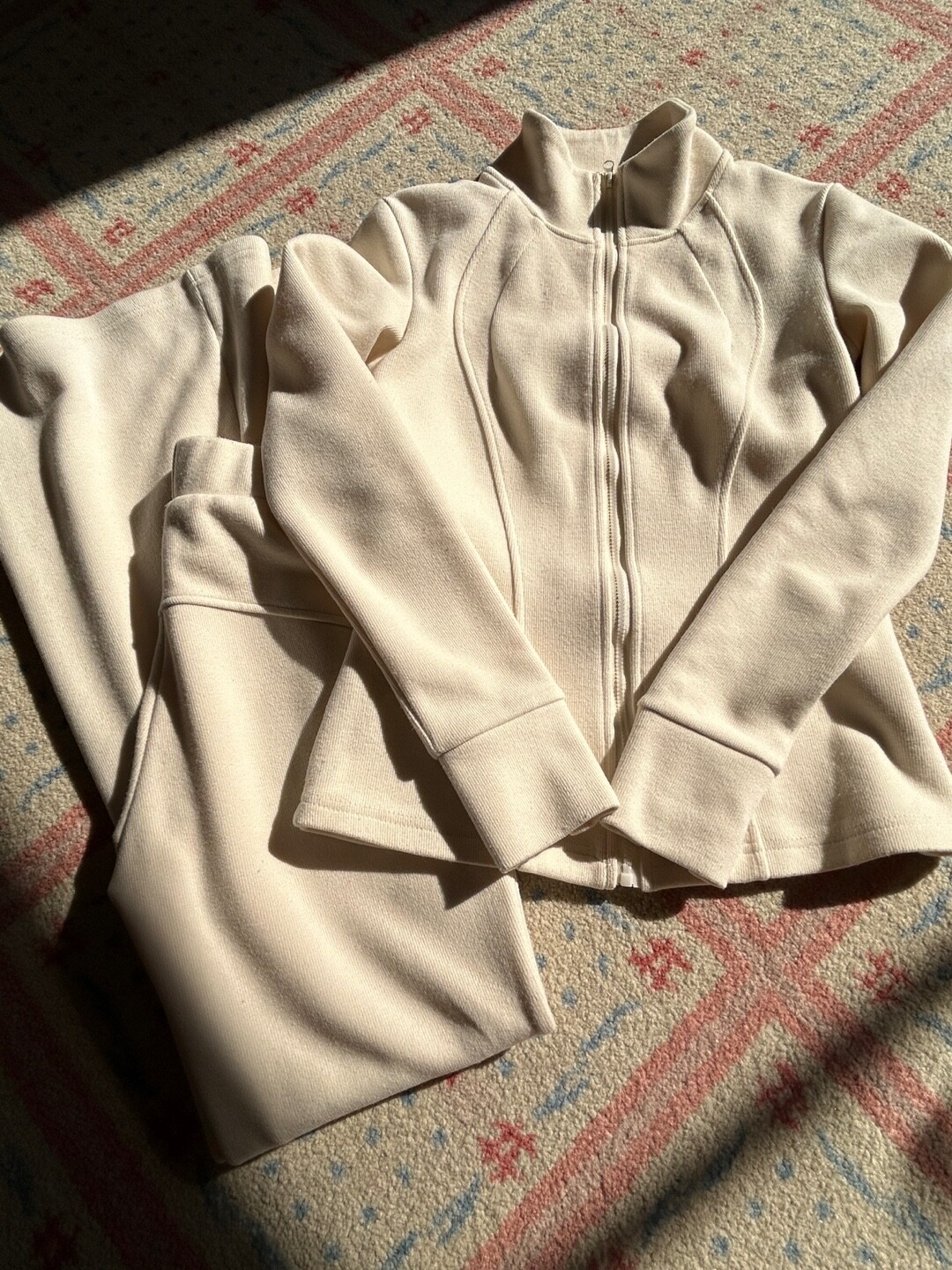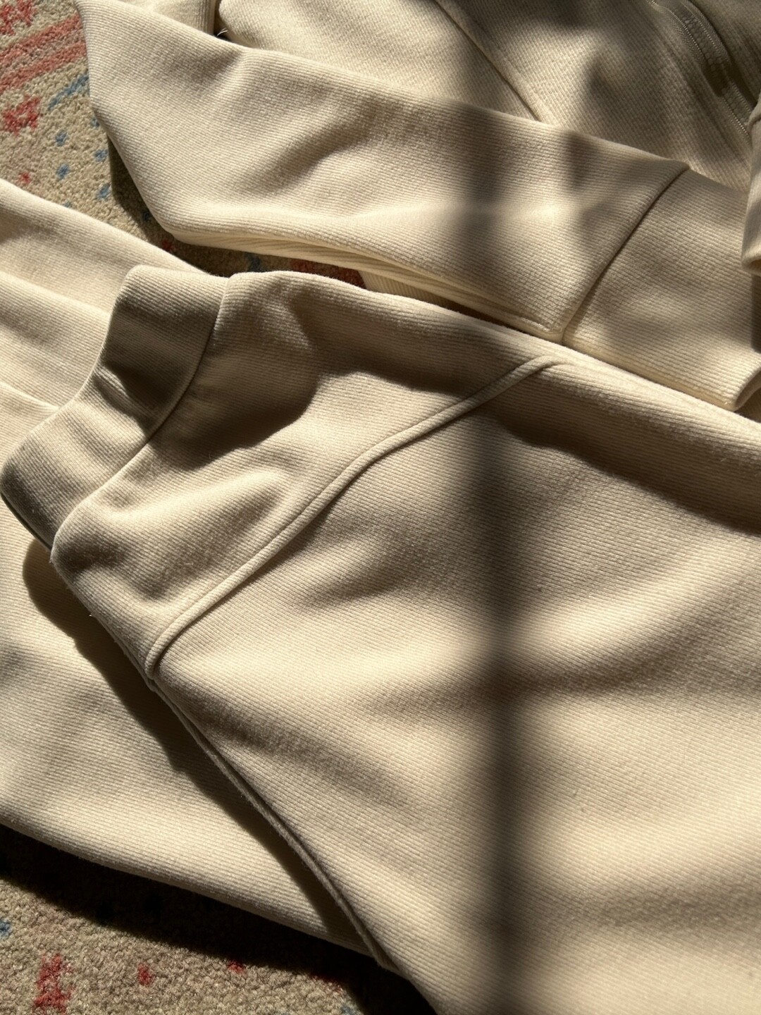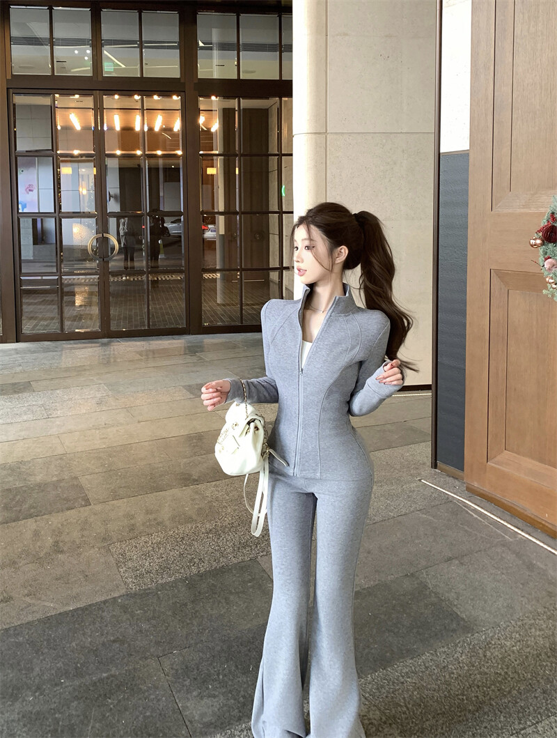 -집업의 허리선 절개 라인과 , 팬츠의 힙 둥근 절개 라인이 전체적인 핏을 매우 예쁘게 만들어줘요.