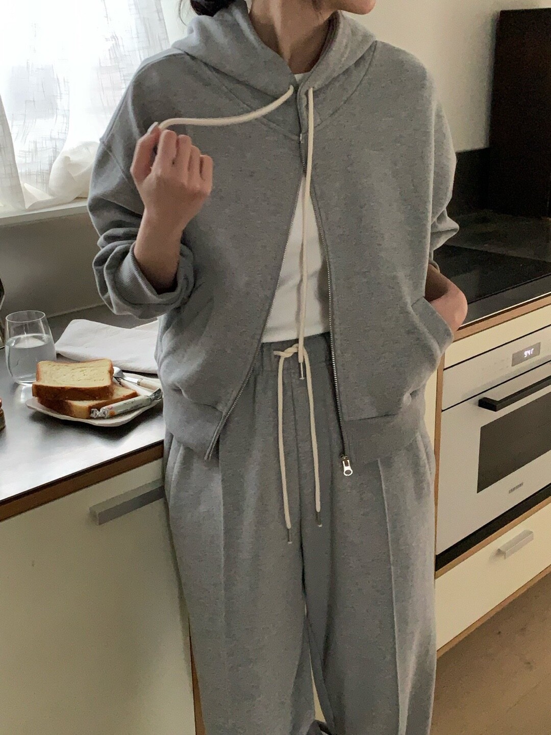 너무 부해보이거나 커서 벙벙하지 않은 깔끔한 라인의 후드집업 입니다.