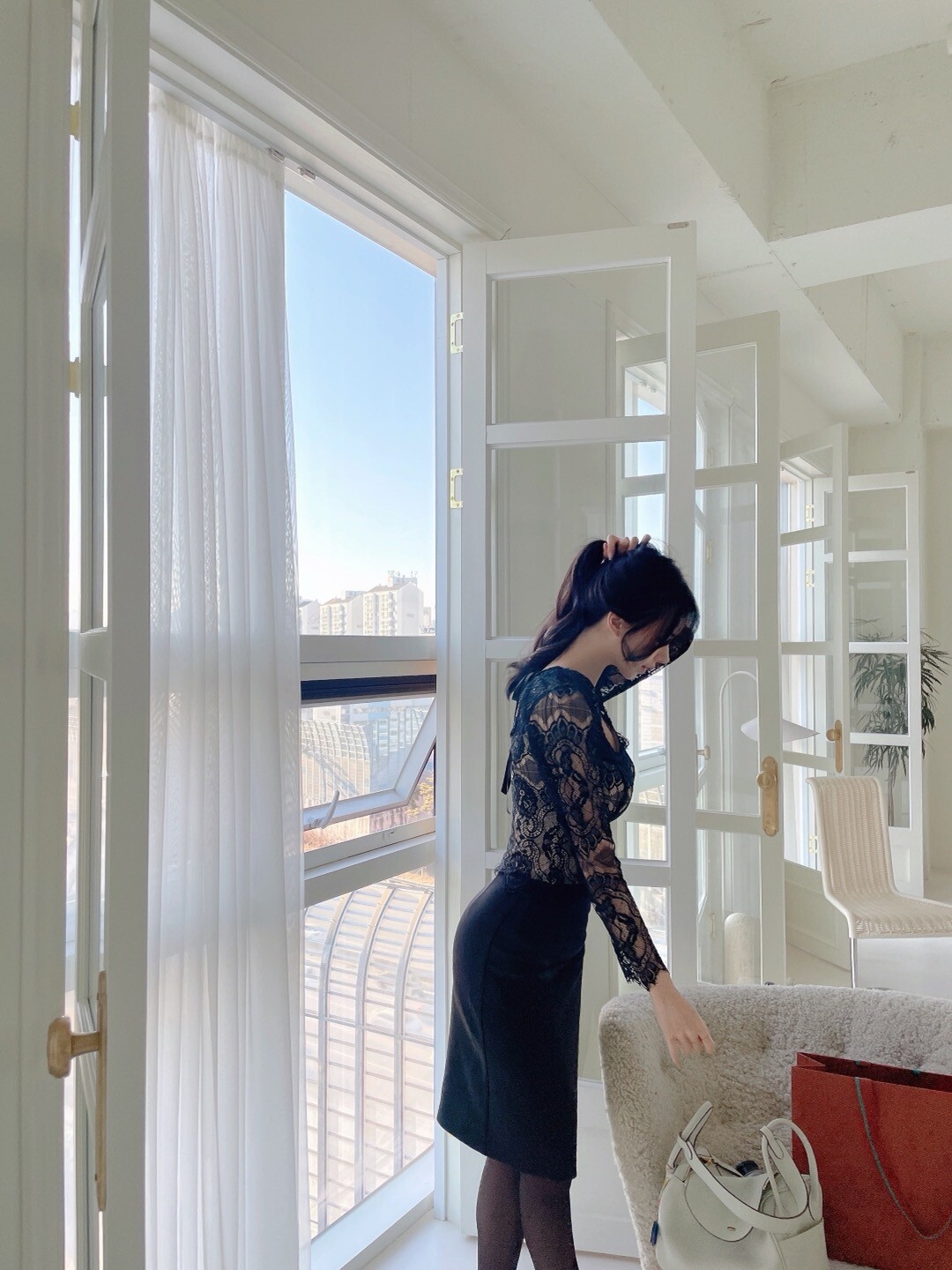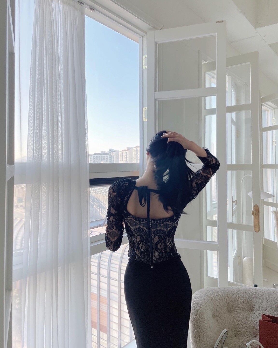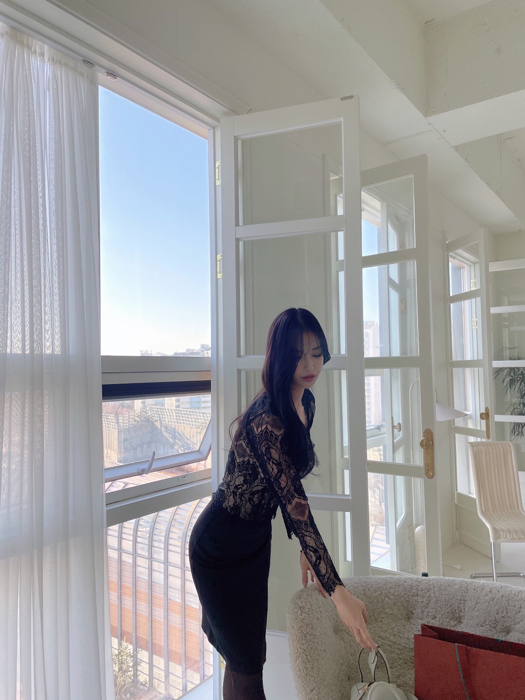 다가오는 발렌타인데이 이벤트로 준비한 뒷 리본이 포인트인 여성스러운 레이스 블라우스 입니다.