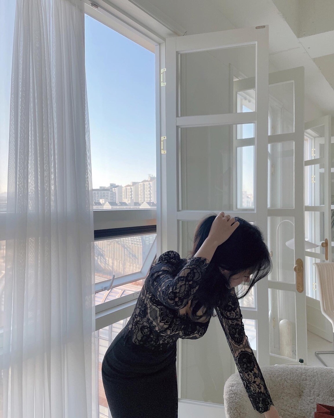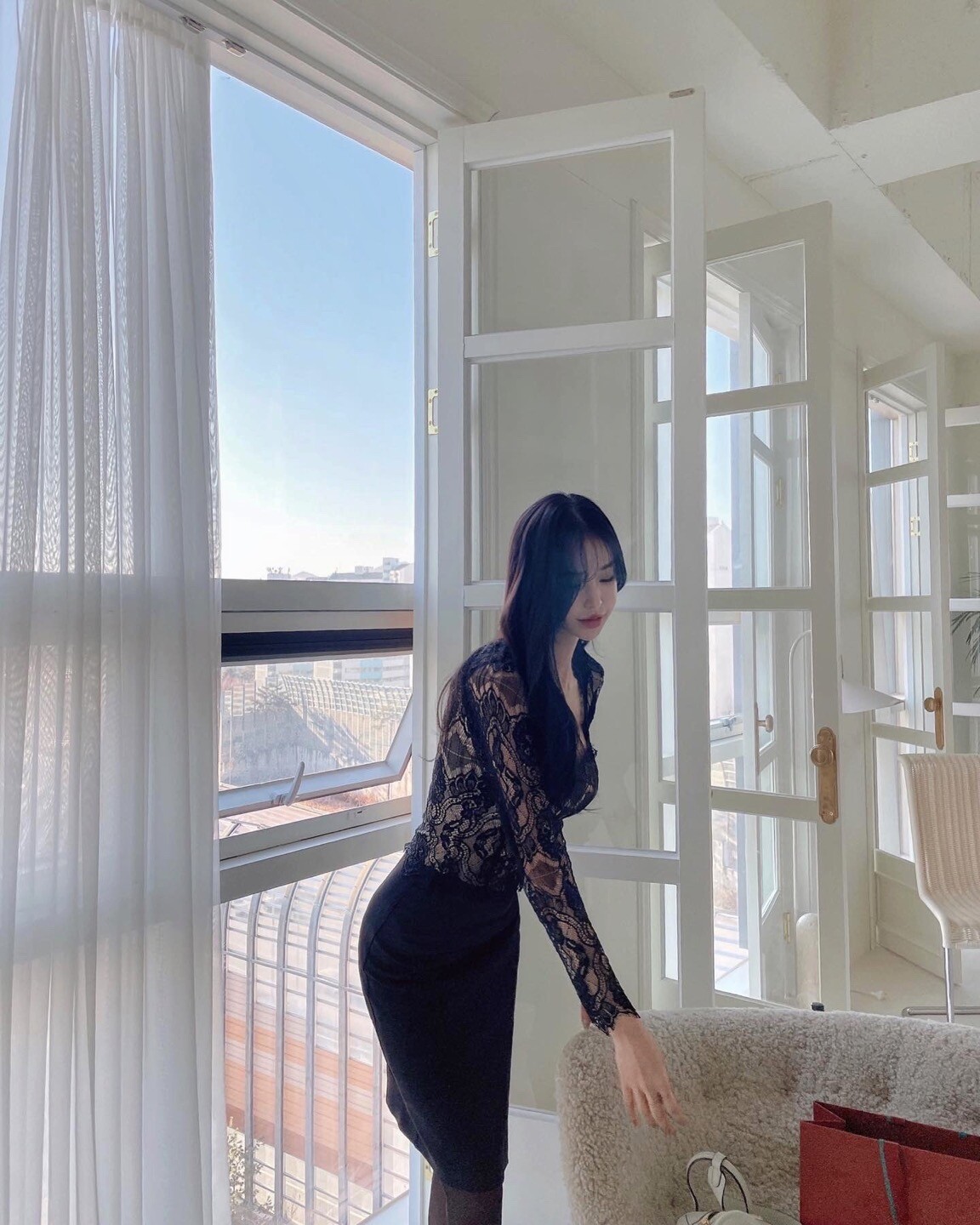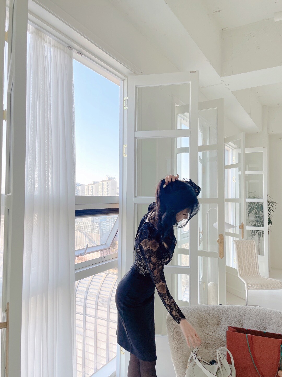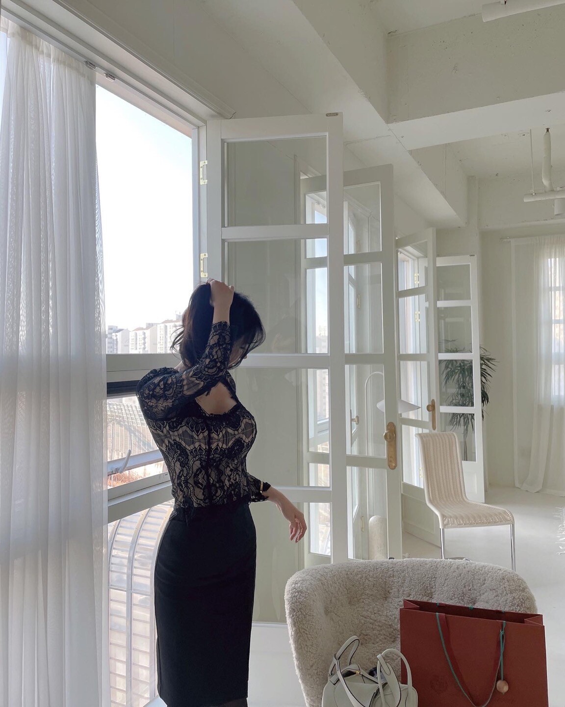 다가오는 발렌타인데이 이벤트로 준비한 뒷 리본이 포인트인 여성스러운 레이스 블라우스 입니다.