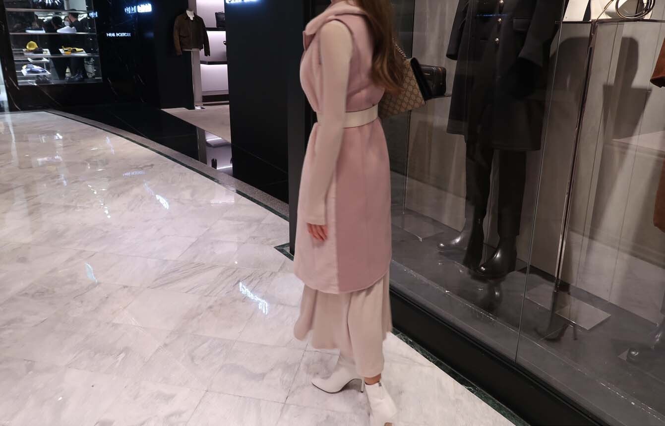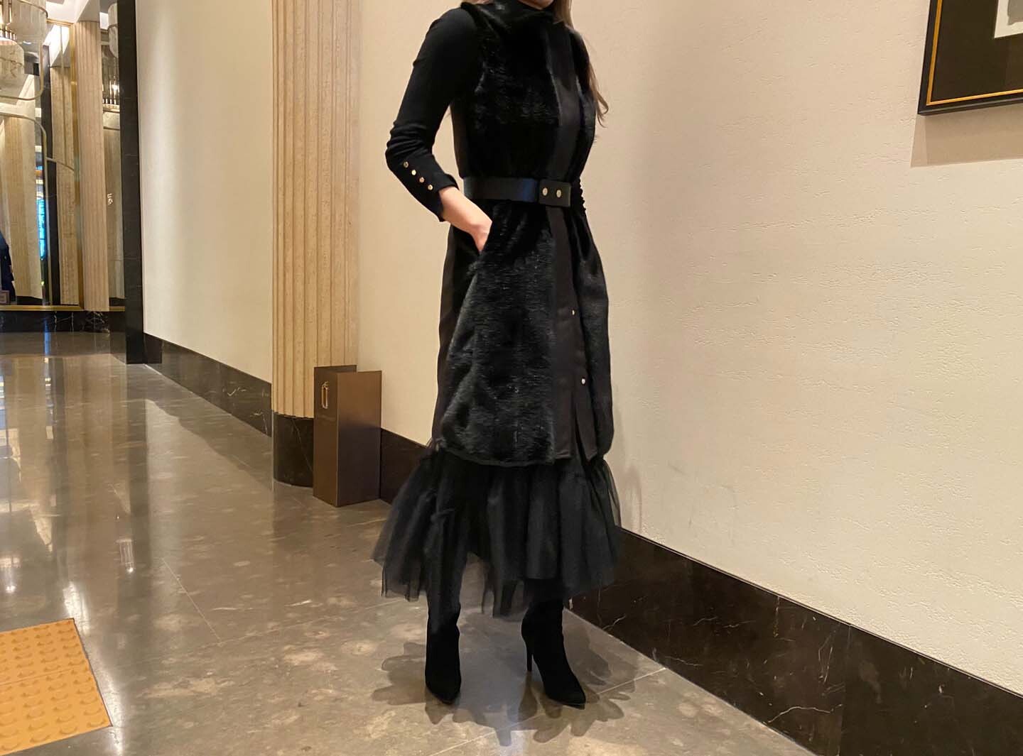 가죽벨트로 여성스러운 라인이 강조될 수 있게 포인트를 주었고,