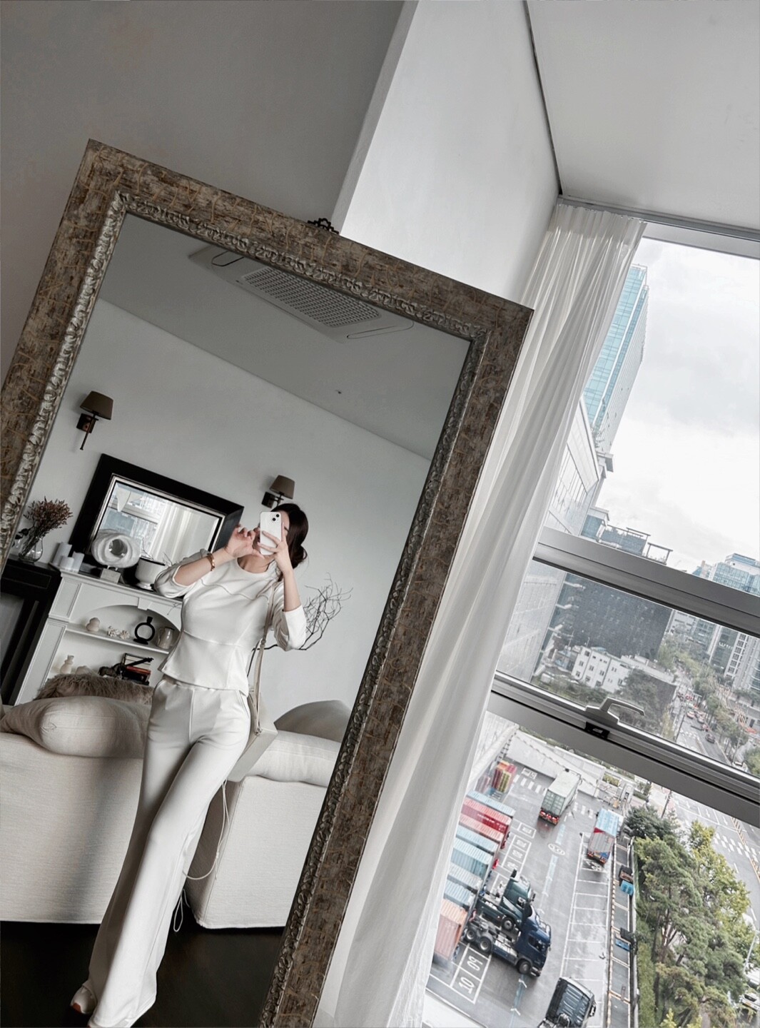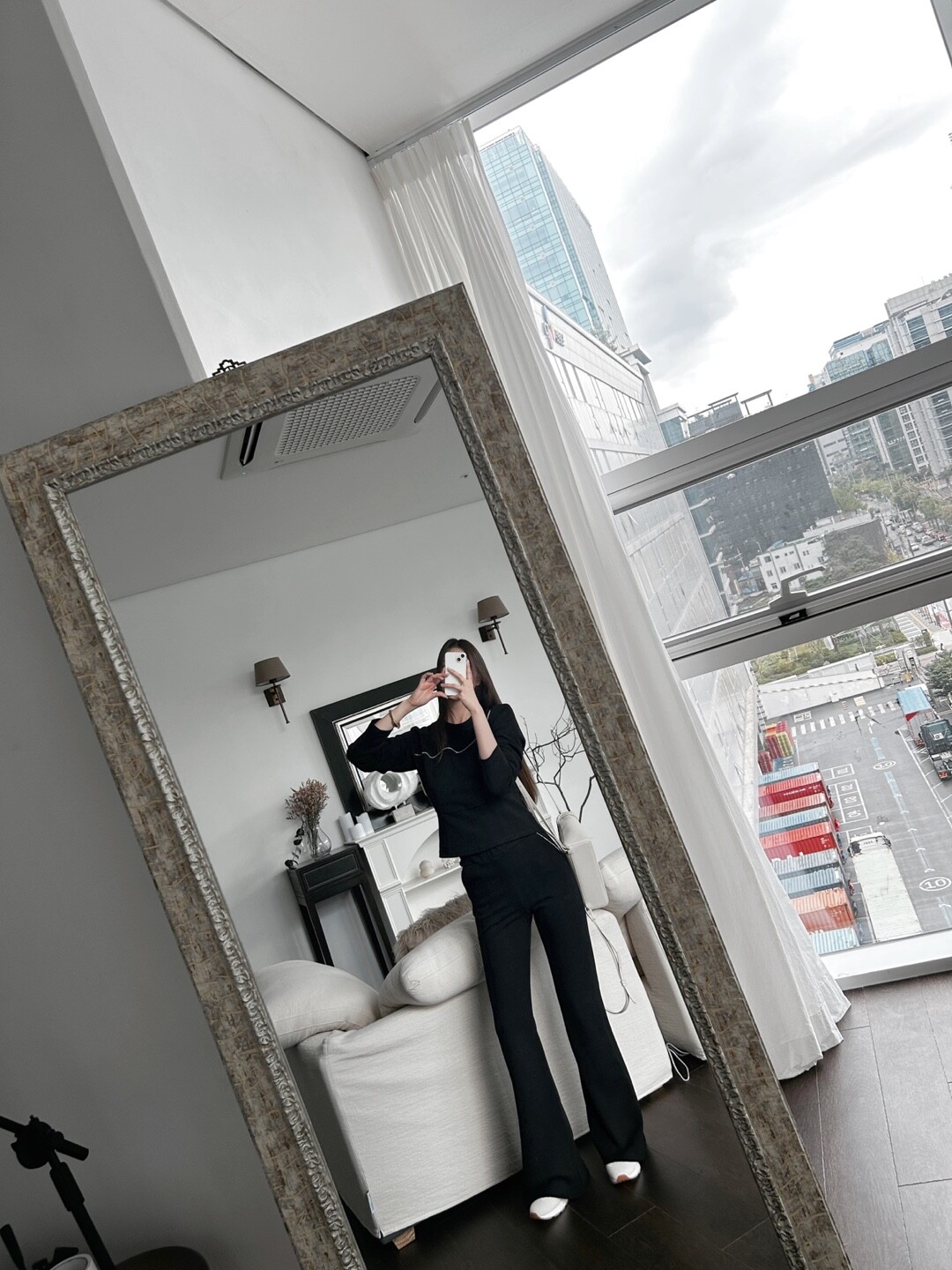 세미부츠컷 라인으로 오다리,엑스다리,휜다리등 커버가 가능하며, 끝단이 살짝 퍼지므로 발이 작아보이는건 덤이에요