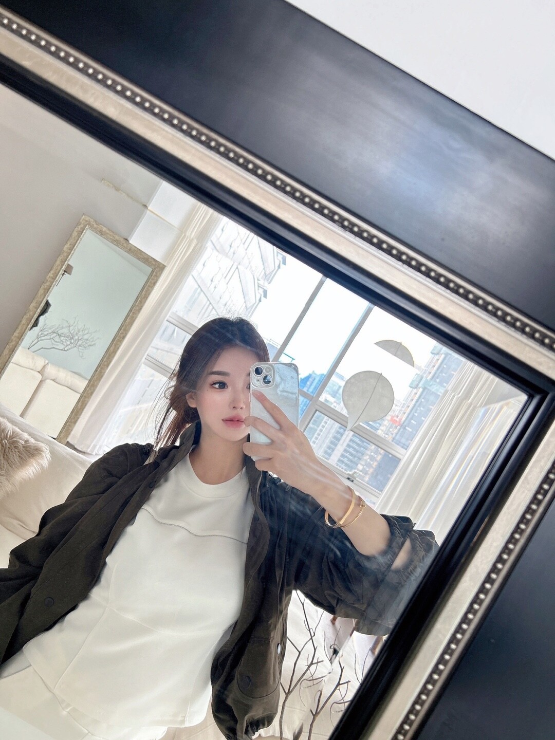 뒤 등판 라인에 가로 절개패턴을 주어 편한 활동이 가능하도록 하였으며,편한 착용감과 동시에 얇은 허리 라인이 강조되는 디자인입니다.