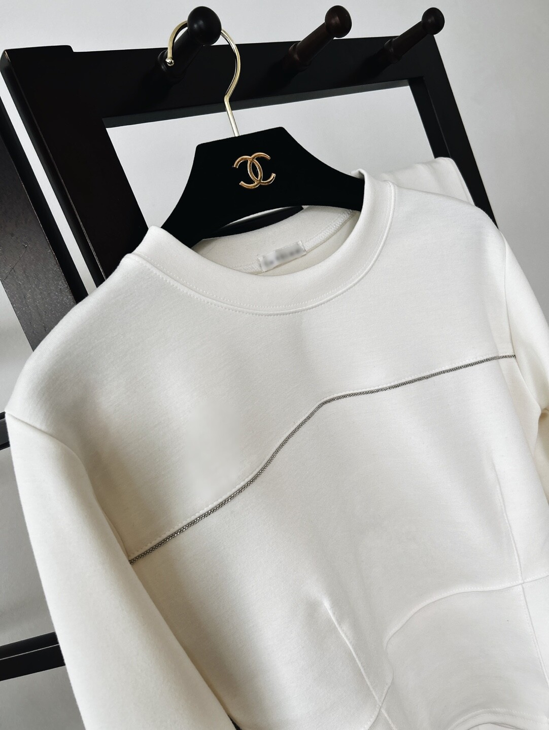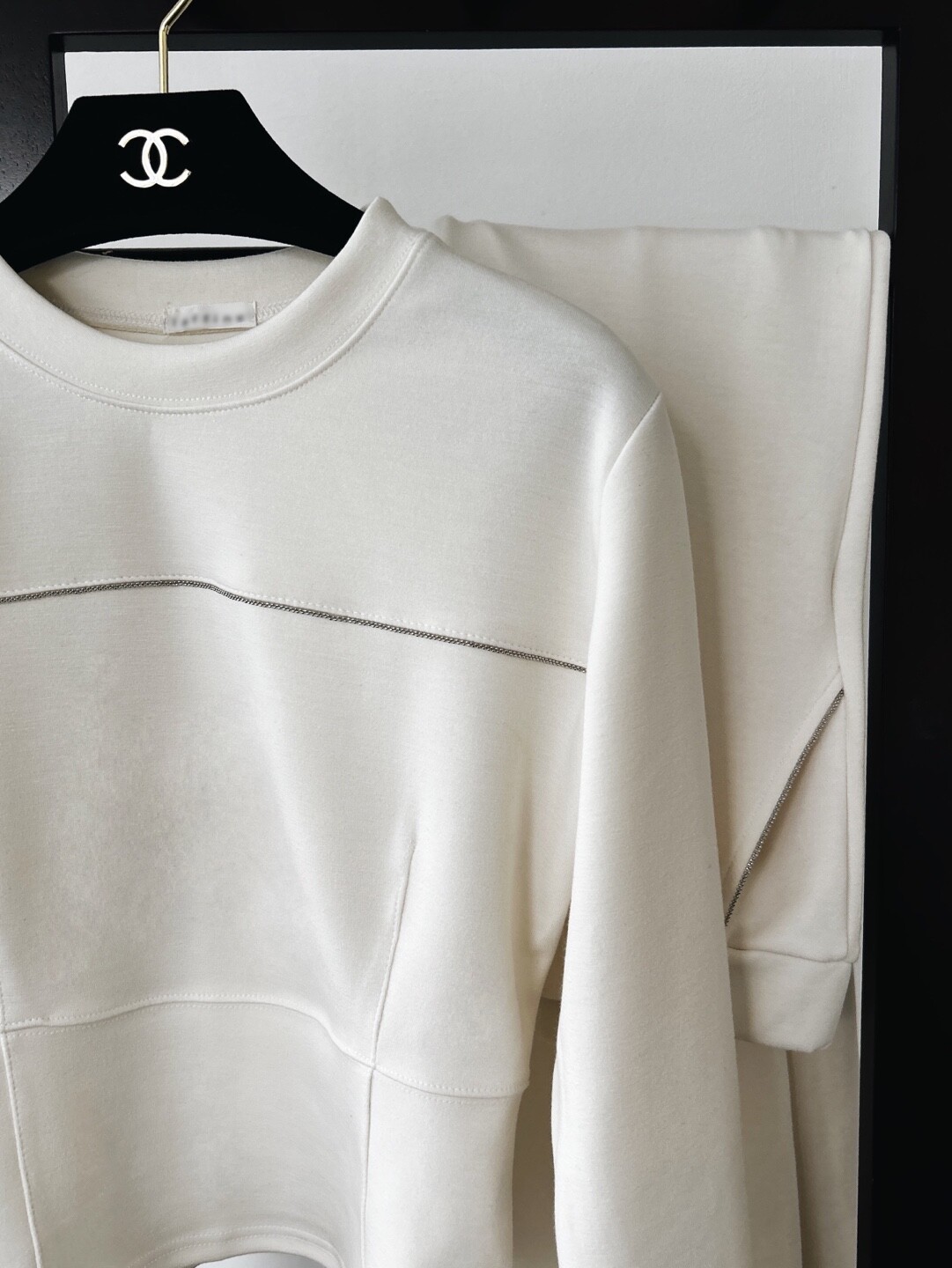 전면부 바스트 라인과 팬츠의 포켓라인으로 비즈의 고급스러운 디테일 디자인을 주었으며,