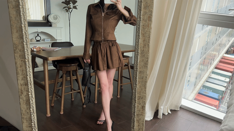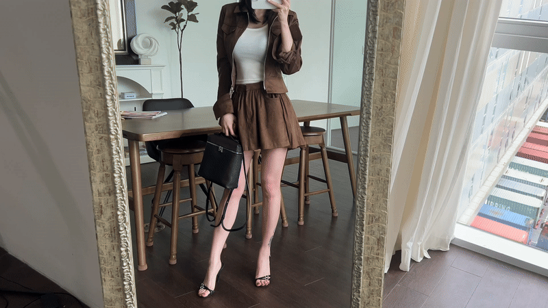 전체 핏이 무너져 보이는데 이번 스웨이드 셋업 자켓은 컬러감, 핏, 기장감 착용감 까지 매우 마음에 들어요