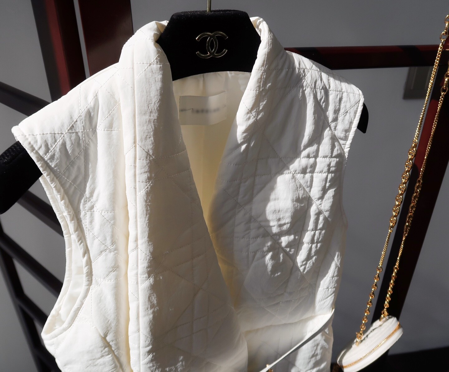 탄탄하고 길이감이 있는 고급스러운 까나쥬 디자인의 퀄팅자켓 보여드려요.