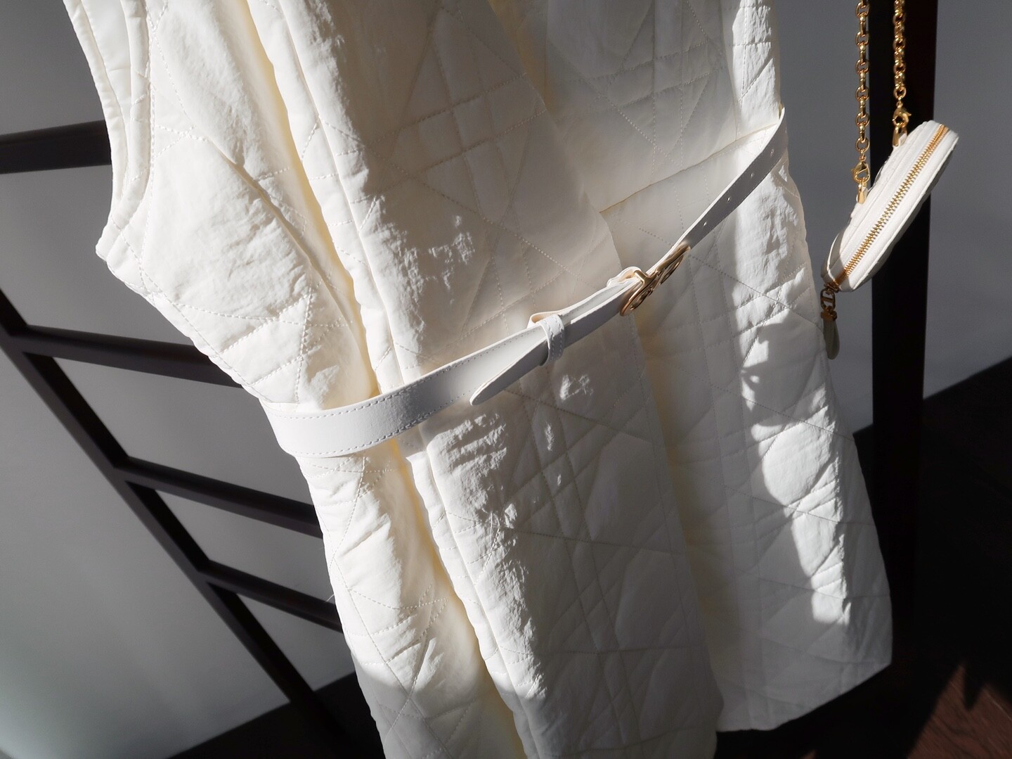 테크니컬한 디자인의 허리 벨트로 여성스러운 실루엣이 드러나도록 연출하실 수 있습니다.