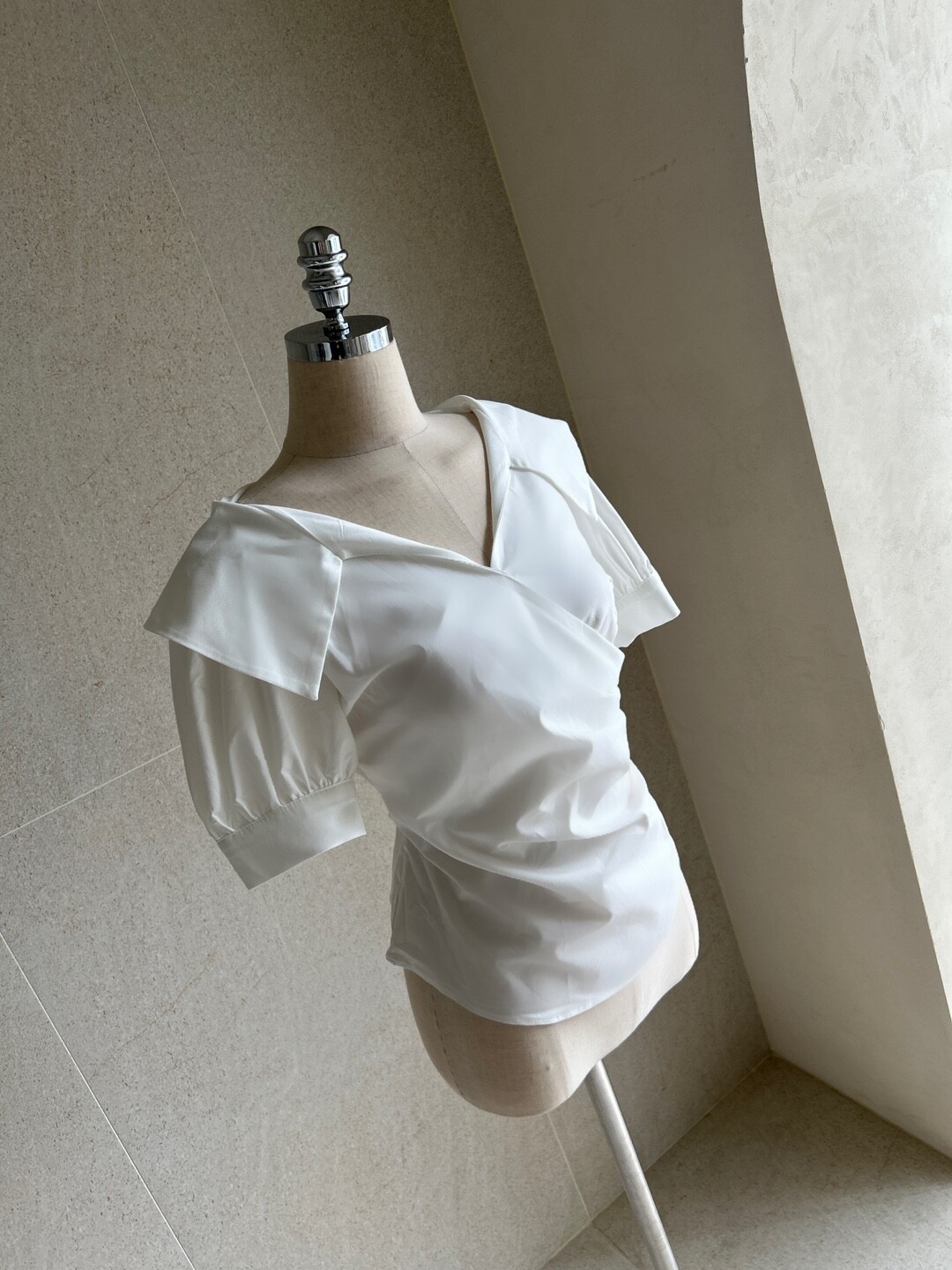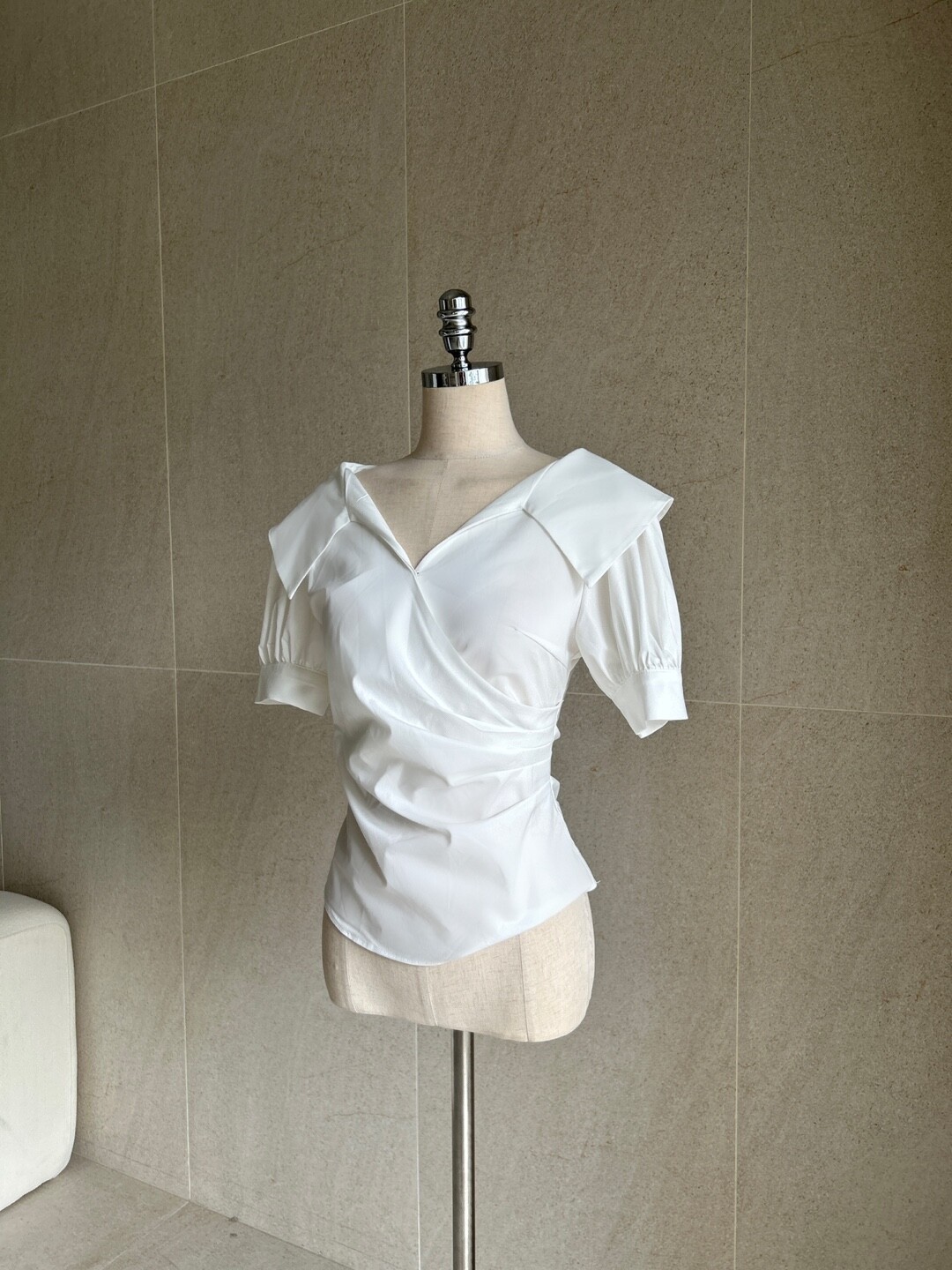 -여성스럽고 로맨틱한 무드의 빅 카라 랩 블라우스 입니다.