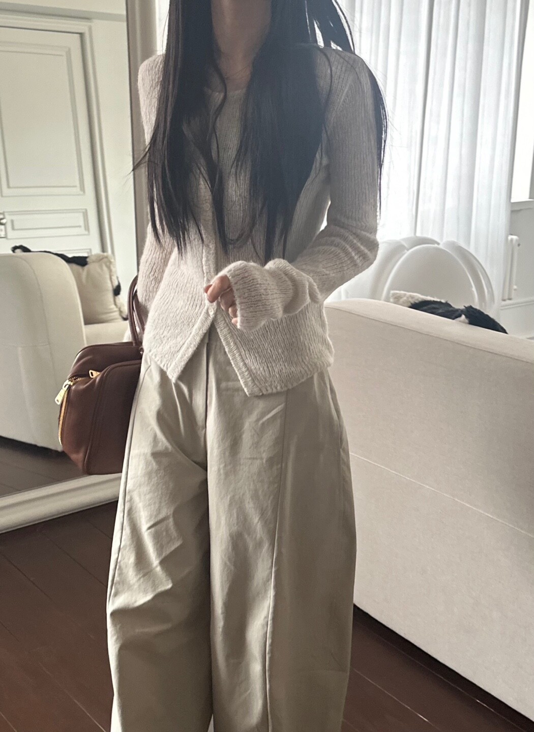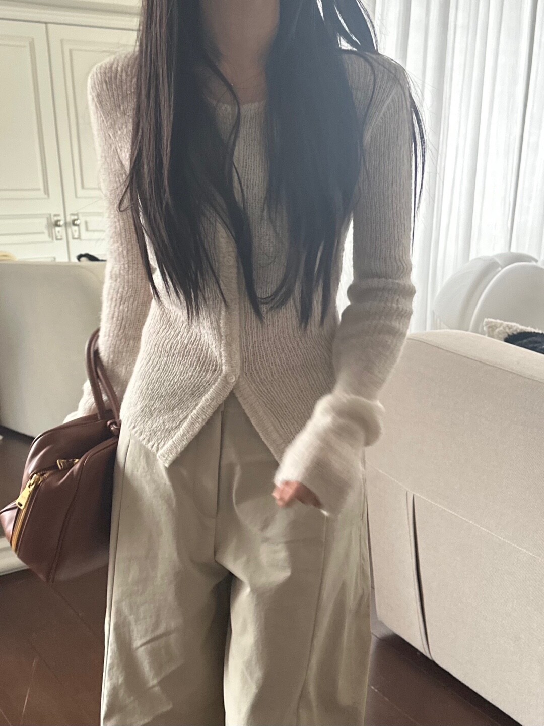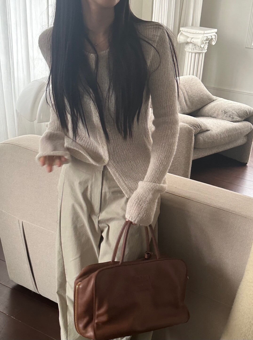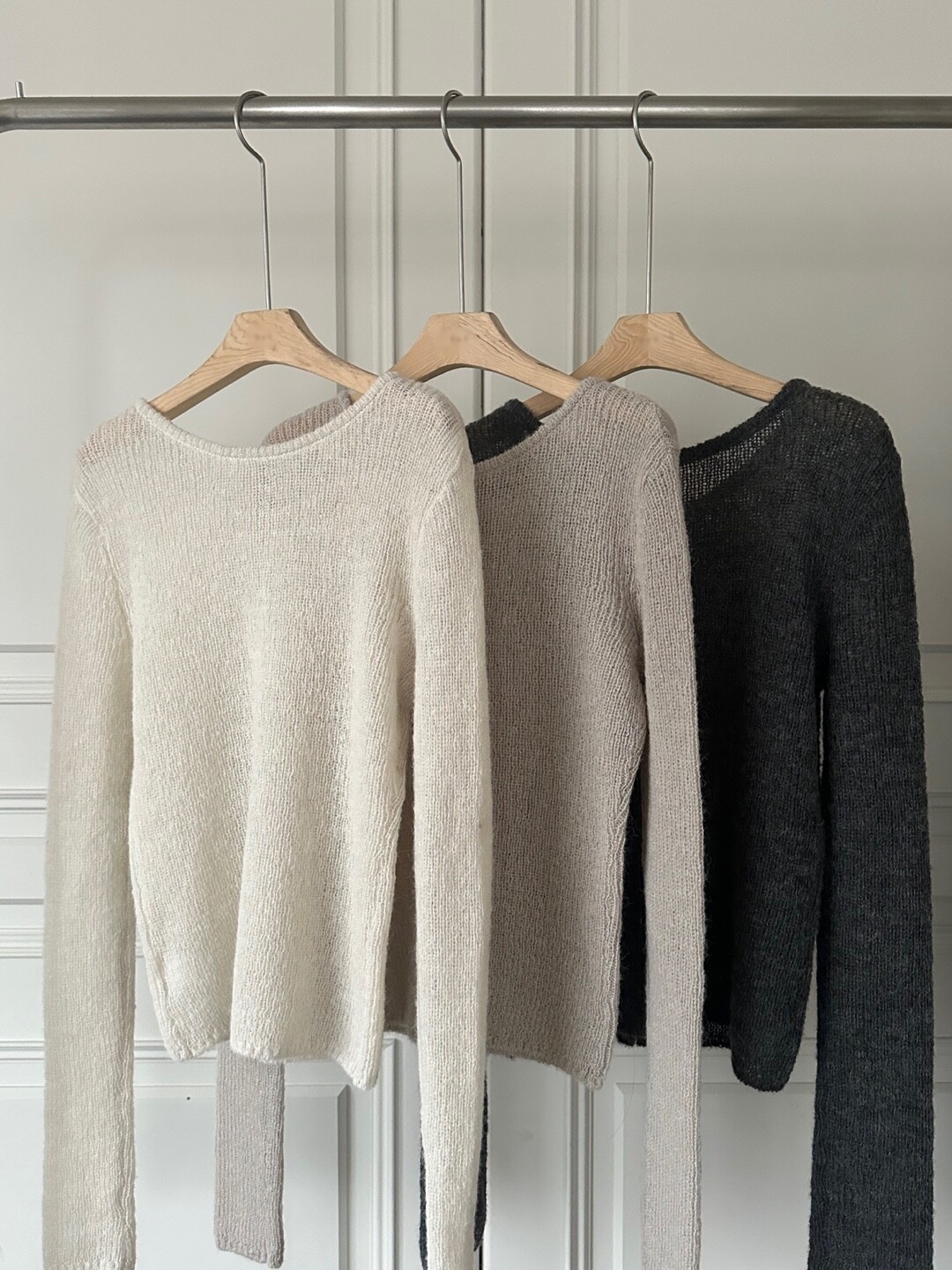 화이트 계열 색상 , 니트 , 린넨 등의 소재