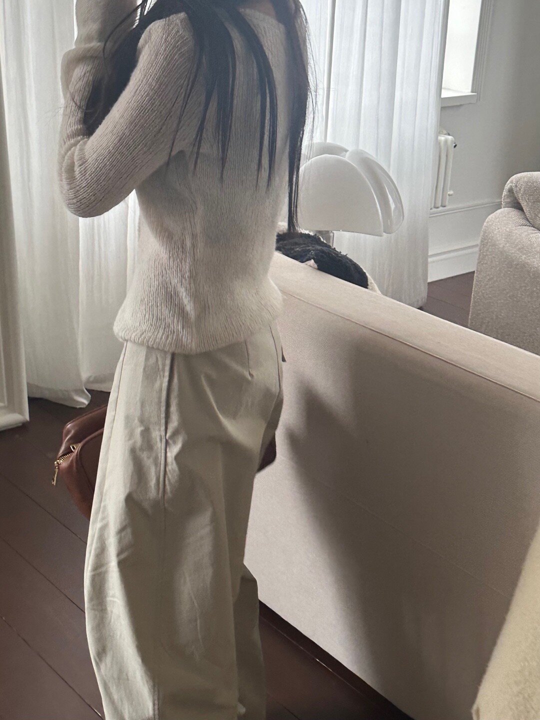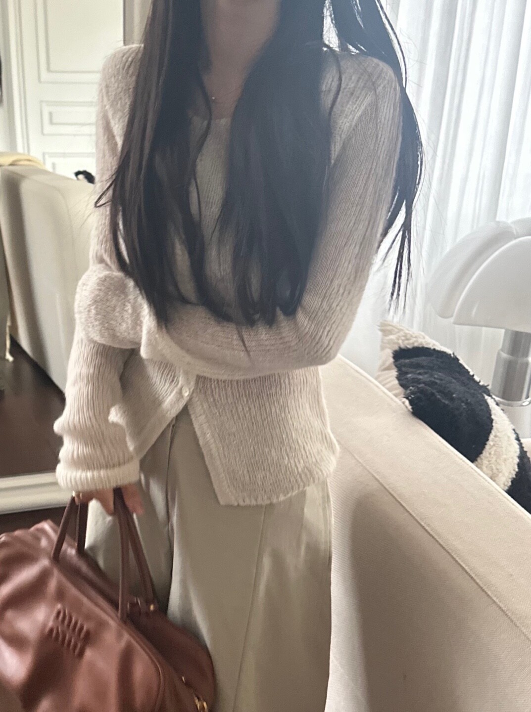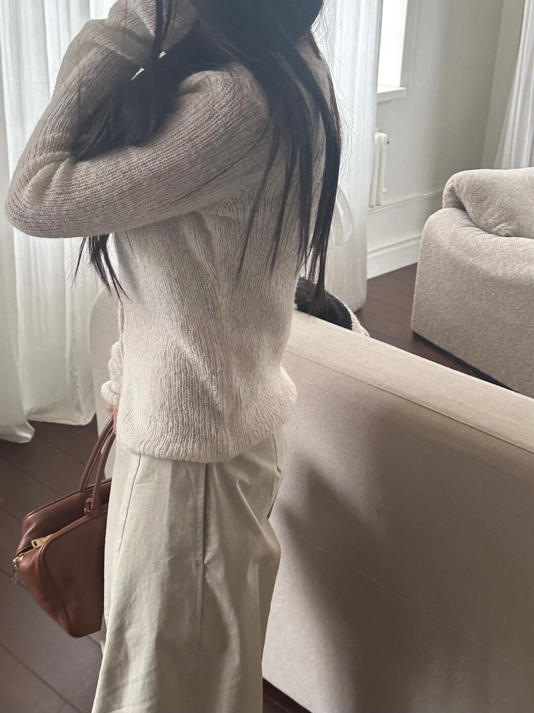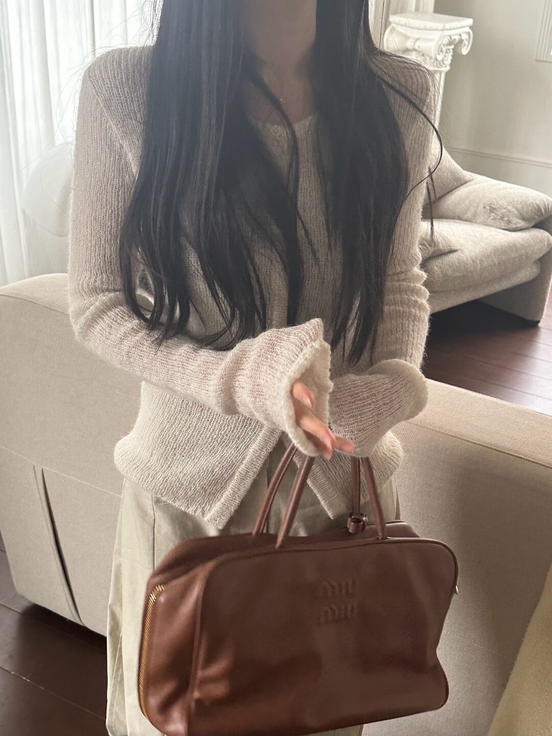 화이트 계열 색상 , 니트 , 린넨 등의 소재