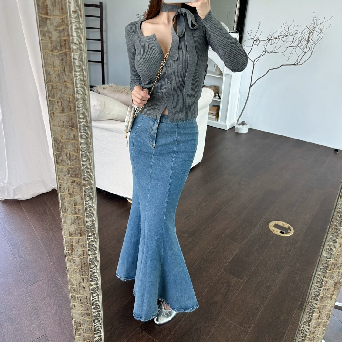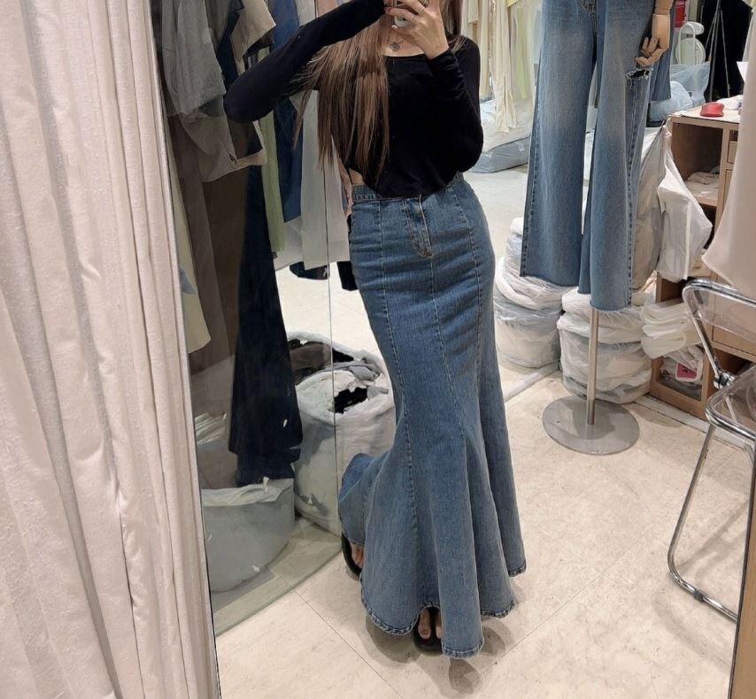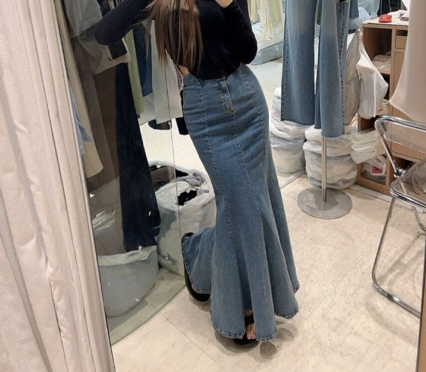 전체적인 몸매 굴곡 라인이 매우 예뻐 보이는 데님 스커트입니다.