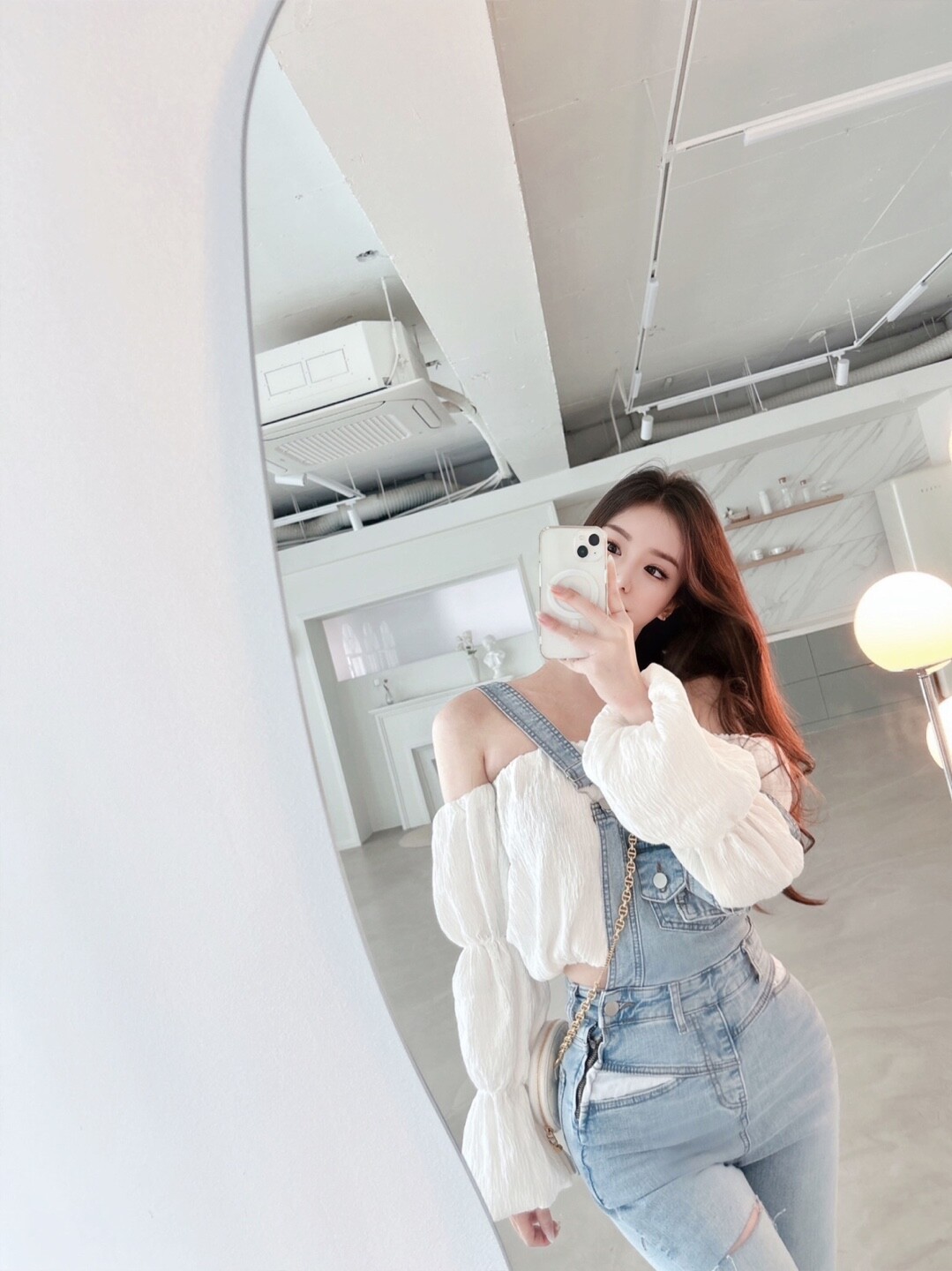 기본 베이직한 흰티나 저 처럼 오프숄더 블라우스에 코디하면 다양한 분위기로 연출이 가능한 제품입니다