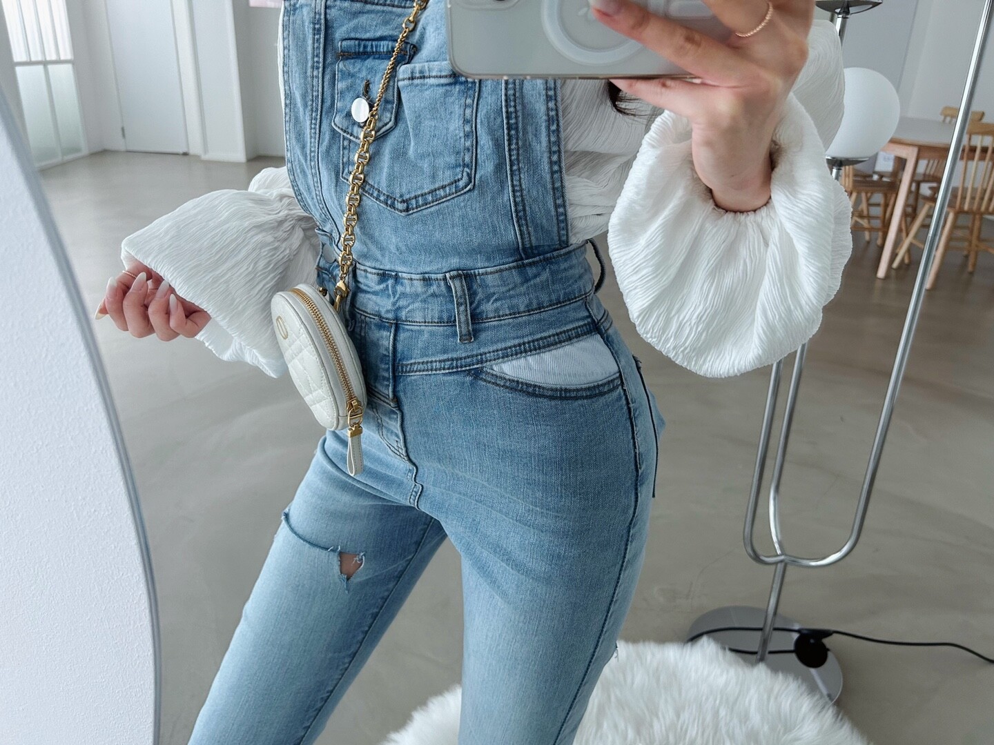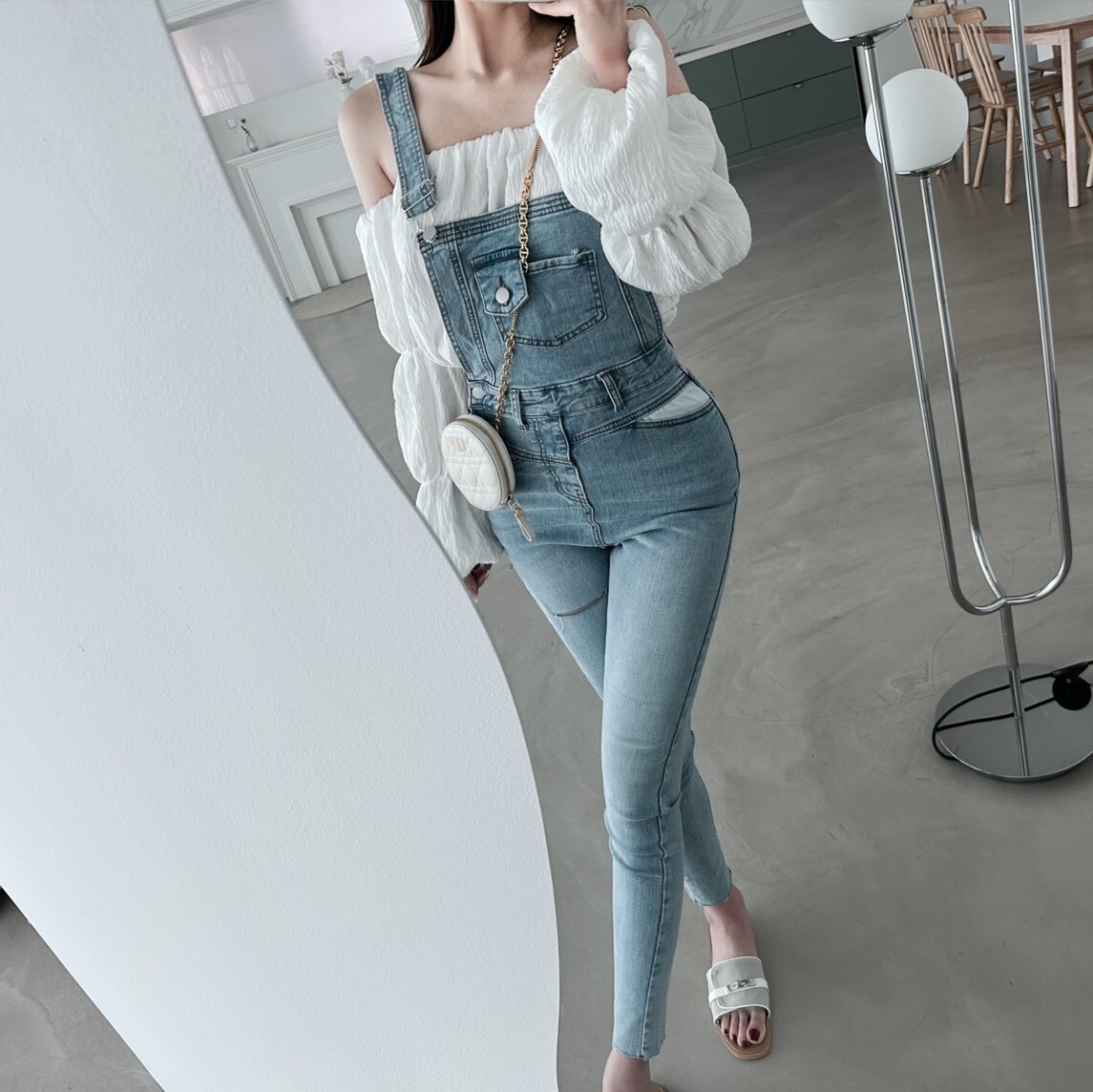 글램한 라인의 탄탄하고 핏하게 붙어 라인이 매우 예쁜 멜빵 스키니 소개해드릴게요